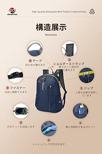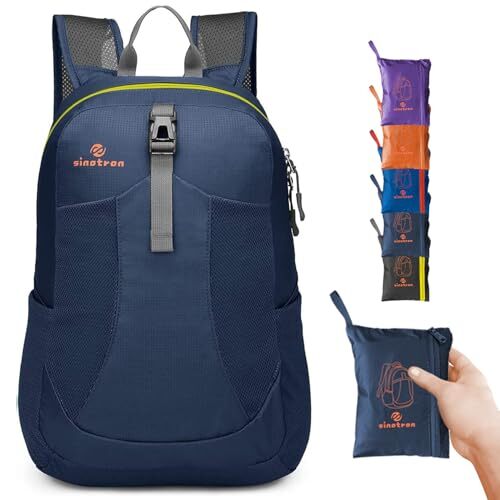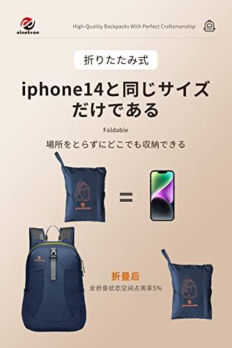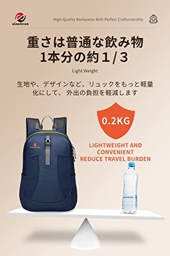 ネイビー [sinotron] アウトドアバック 超軽量携帯リュック 折りたたみ可能バックパック 耐久性のある 22L大容量 収納