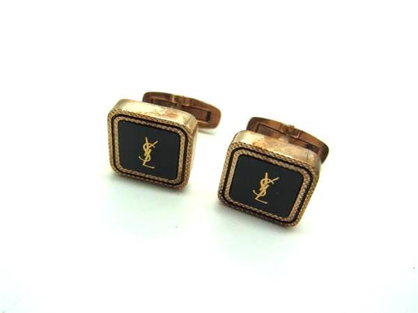 ■美品■ YVESSAINTLAURENT イヴサンローラン カフスボタン カフリンクス アクセサリー メンズ ゴールド系×ブラック系 DY0198