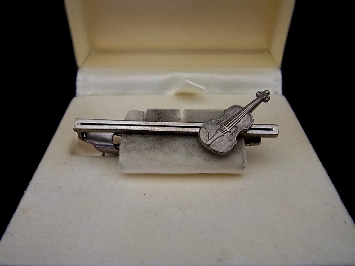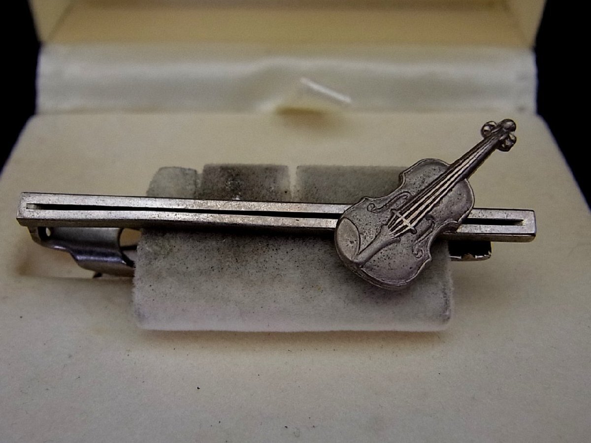 KF0699 美品【バイオリン・楽器 音楽】「シルバー」ネクタイピン タイピン■