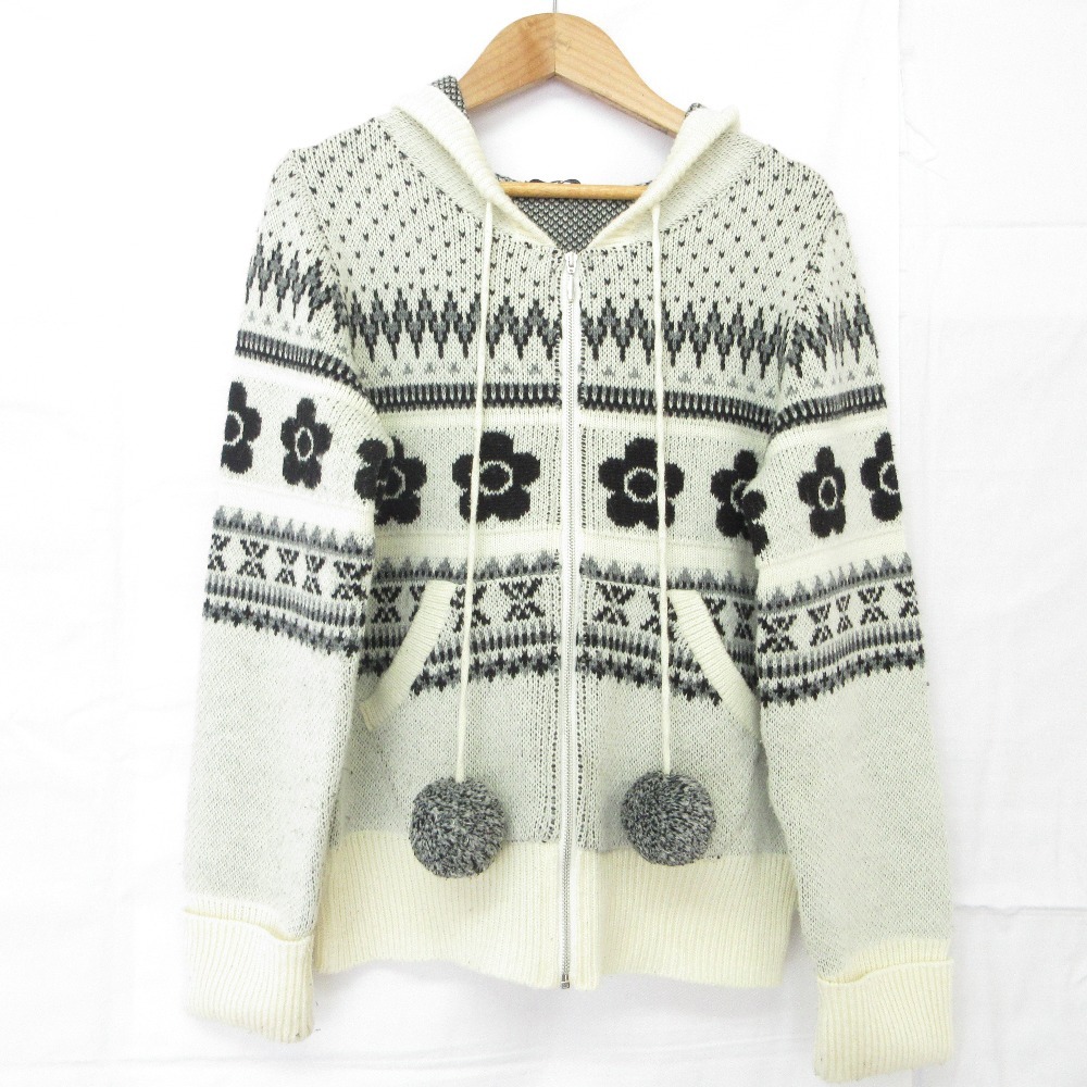 商品名:MARY QUANT マリークワント デイジー ノルディック柄 ポンポン ニット パーカー フーディー ジャケット 38 ホワイト