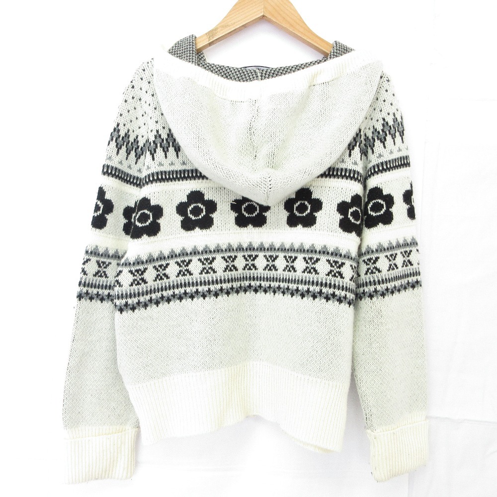 良品 MARY QUANT マリークワント デイジー ノルディック柄 ポンポン ニット パーカー フーディー ジャケット 38 ホワイト