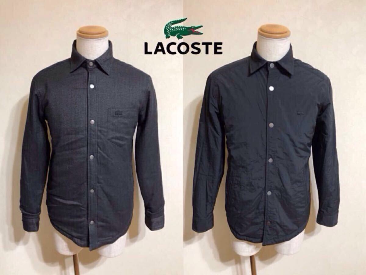 LACOSTE ラコステ 2WAY 中綿 リバーシブル 厚手 シャツ ジャケット トップス FRサイズ39 USサイズS/M 黒 長袖 170/92A レギュラーフィット