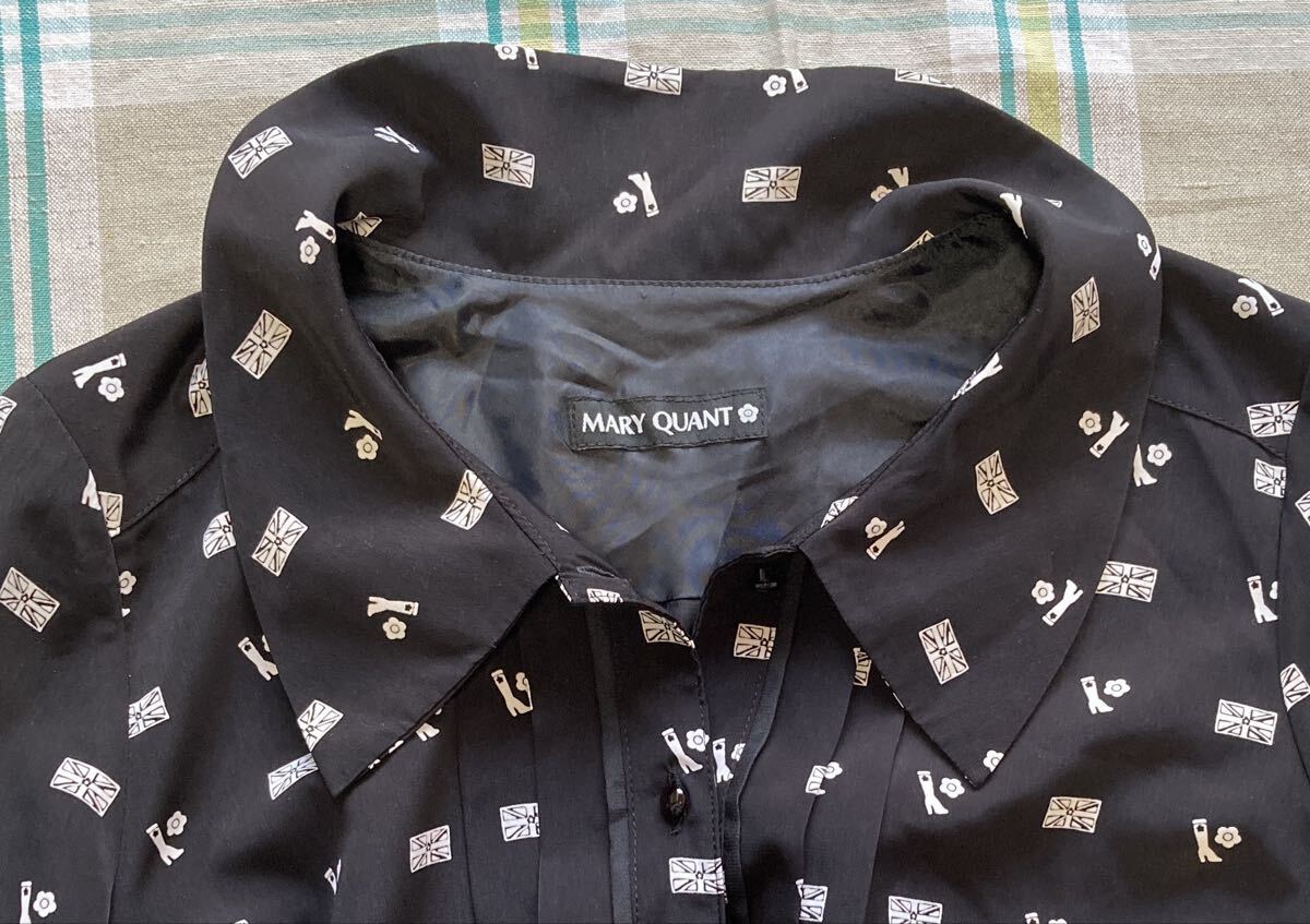 ★MARY QUANT マリークワント★ブーツ柄・花柄 長袖ワンピース Mサイズ ブラック/黒 USED