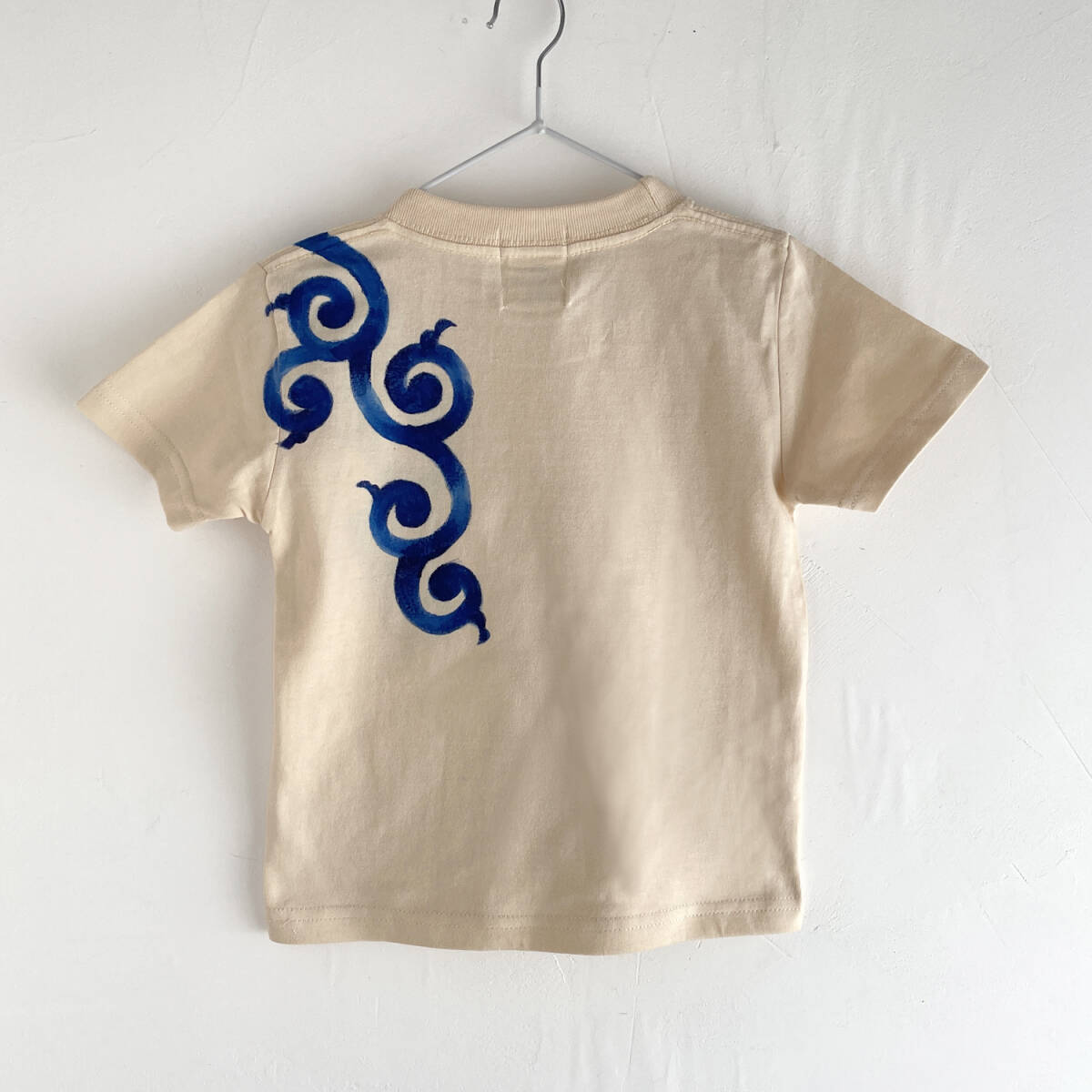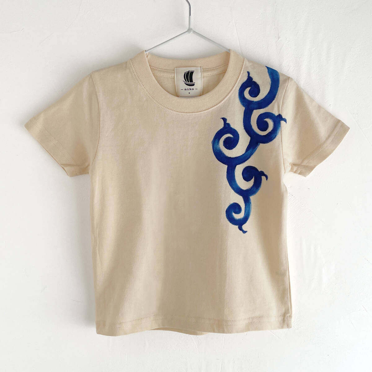 ハンドメイド 手描きTシャツ キッズTシャツ 唐草柄Tシャツ 手描きで描いた唐草柄のTシャツ ホワイト | |||