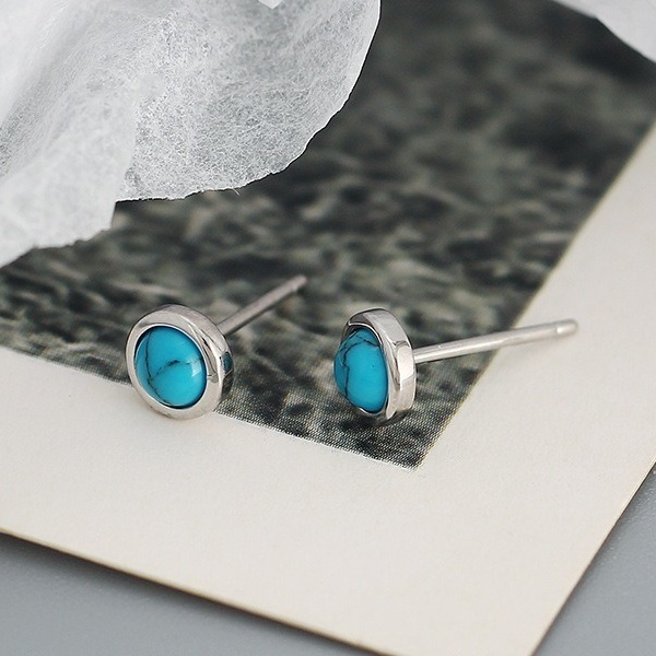 小振りのラウンドストーンが身に着けやすい印象のスタッドピアス。