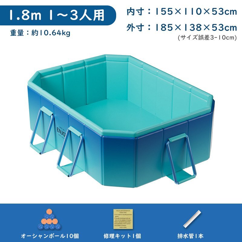 プール 折りたたみ 家庭プール スイミングプール 空気入れ不要 ビニール 耐久性 水遊び キッズ 庭 アウトドア 1.8m 1-3人用