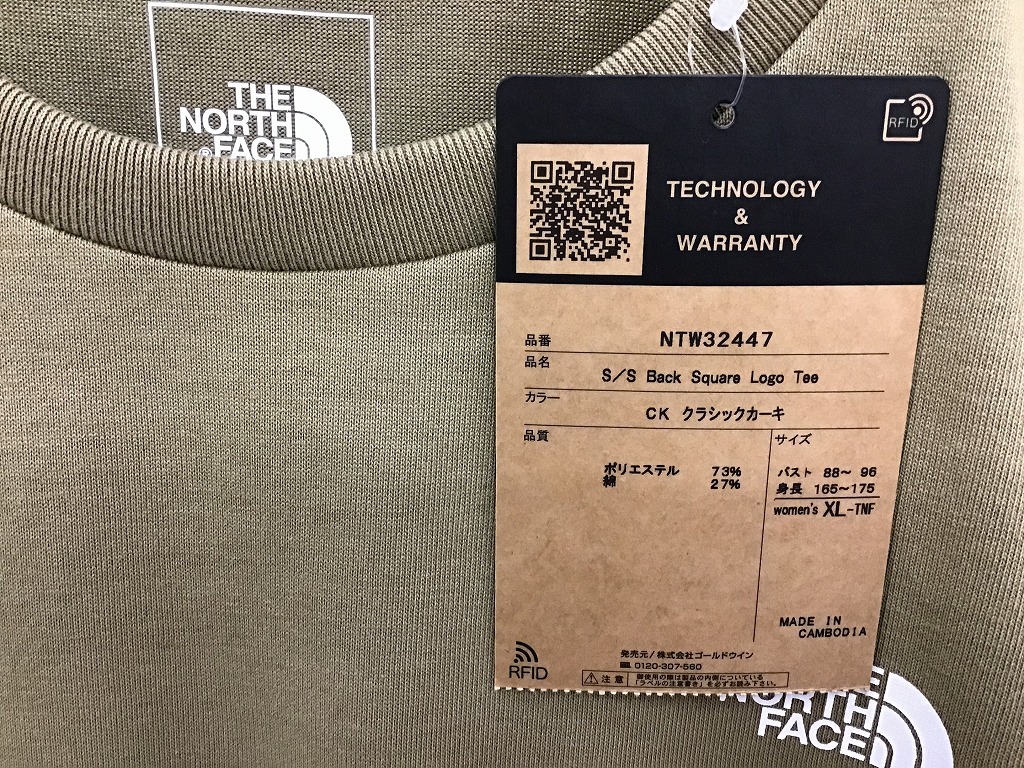 【未使用】 ザノースフェイス THE NORTH FACE ショートスリーブバックスクエアロゴティー オリーブ NTW32447