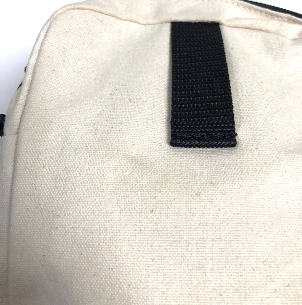 キャンバス生地にスヌーピーのプリント、ブランドロゴデザインです。