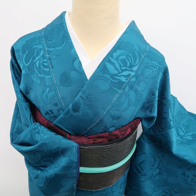 着物の薔薇柄についての豆知識…モダン柄の中で特に人気が高いバラは、実はその色によって柄の持つ意味が異なります。ピンクのバラは上品さやお淑やかさ、青は奇跡や夢、白は清純や尊敬、黄色は可憐や友情を表しています。またモダン創作着物は、お洒落を楽しむお召し物として、また和装の幅を広げる意味からも一枚お手元に置かれると重宝します。