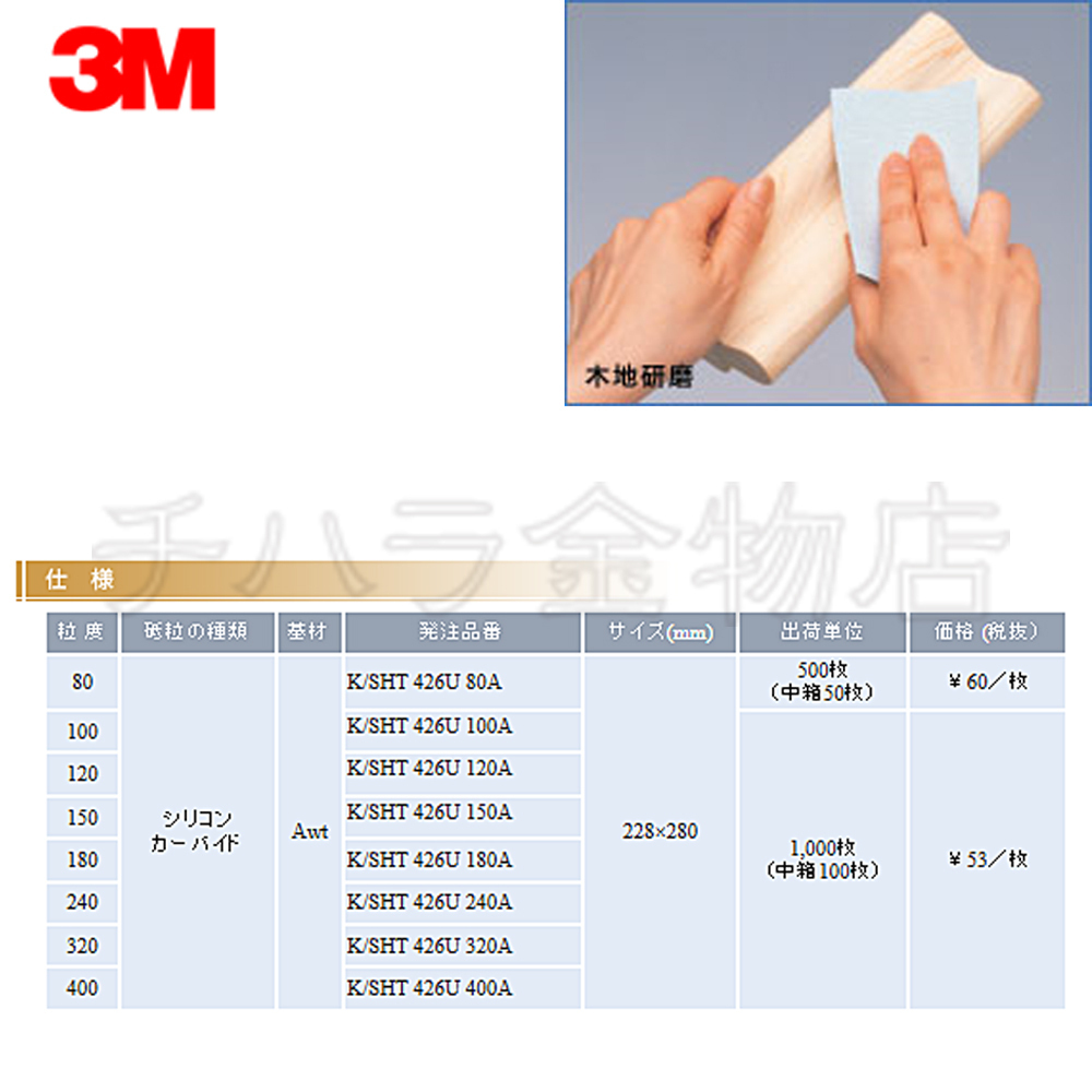 在庫処分品! 3M 空研ぎペーパーシート トライエムアイト 426U/100A 228×280mm 10枚入