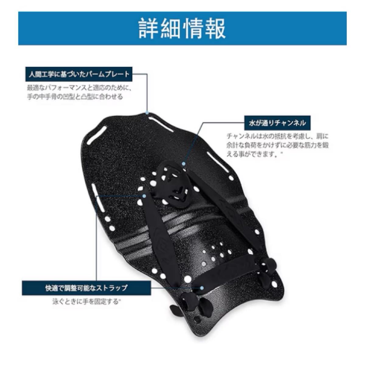 【デザイン】人間工学に基づいた,ハンドパドルの凸面デザインは、水上でのトラクションを高め、入水時の適切な手の位置を感じやすくし、安全に筋肉を鍛えることができます。