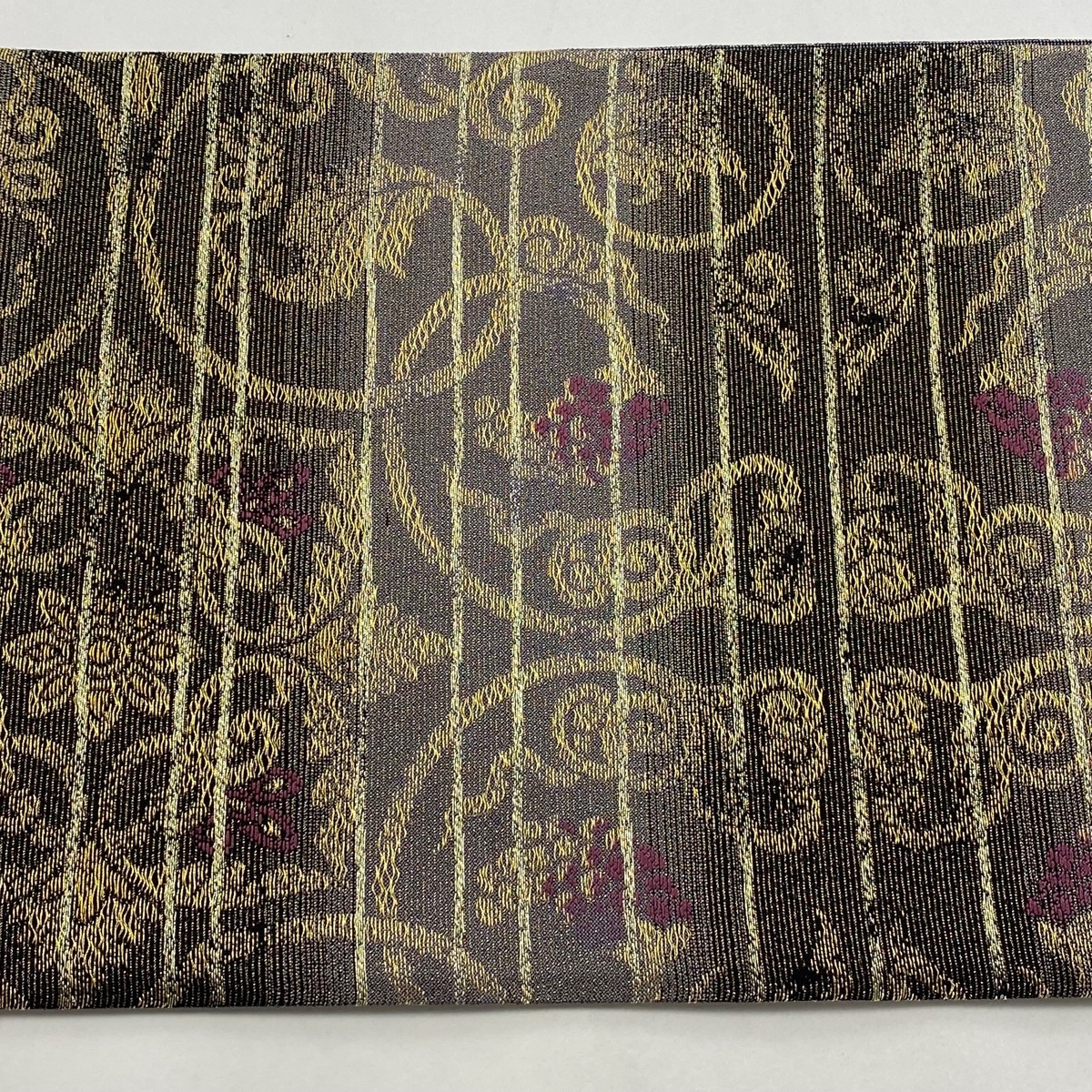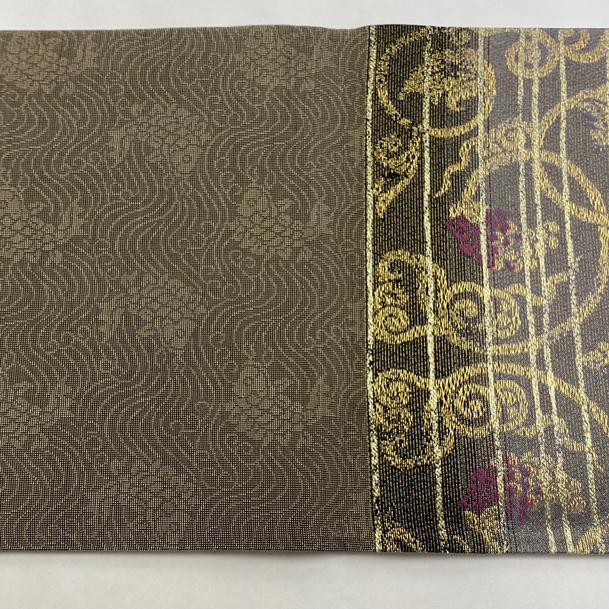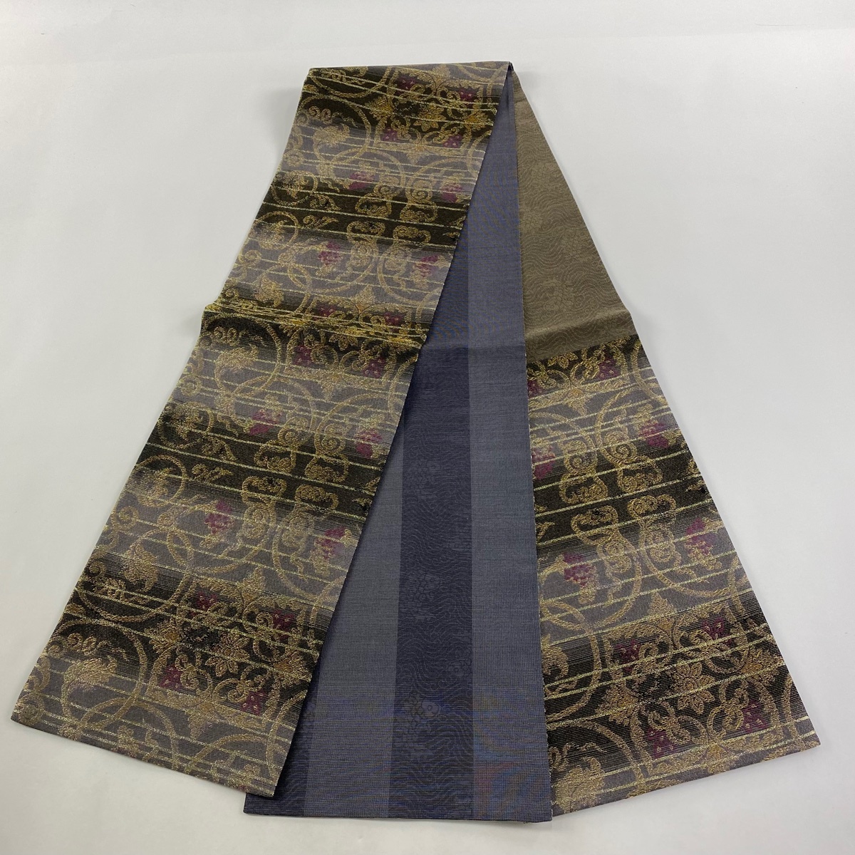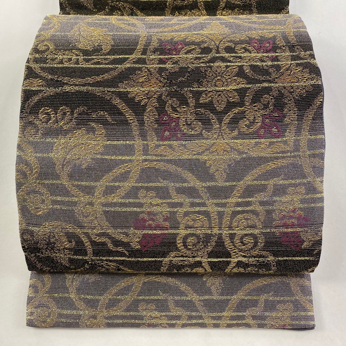 | 袋帯 美品 名品 段縞 葡萄唐草 金糸 箔 灰茶 六通 正絹 【中古】 |