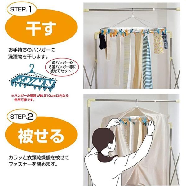 洗濯物を布団乾燥機を使って洗濯物を素早く乾かせる、衣類乾燥袋。