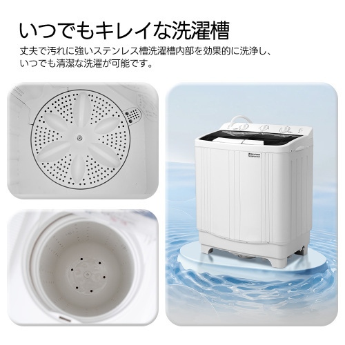 ◆06 6.5kgの容量で1~2人家族に適しています 1回の洗濯で大量の衣類を洗うことができ、時間や労力を節約します。また、日常の洗濯ニーズを満たすために十分なスペースを提供し、効率的で快適な洗濯体験を実現します。 家族の衣類:大人のTシャツやシャツ約8枚。 ジーンズ:大人用のジーンズやパンツ約4本。 タオル:バスタオルやハンドタオルを合わせて約6枚。 寝具:シングルサイズのシーツや枕カバーなどを1セット。 ◆07いつでもキレイな洗濯槽 丈夫で汚れを効果的に洗浄し、いつでも清潔な洗濯が可能です。 ※製造メーカーでは、出荷前にテストを行います。そのため、洗濯槽に残存水がある場合がありますが、不良品ではありません。使用開始後、一度運転を行うことで残った水は排出されますので、ご安心ください。