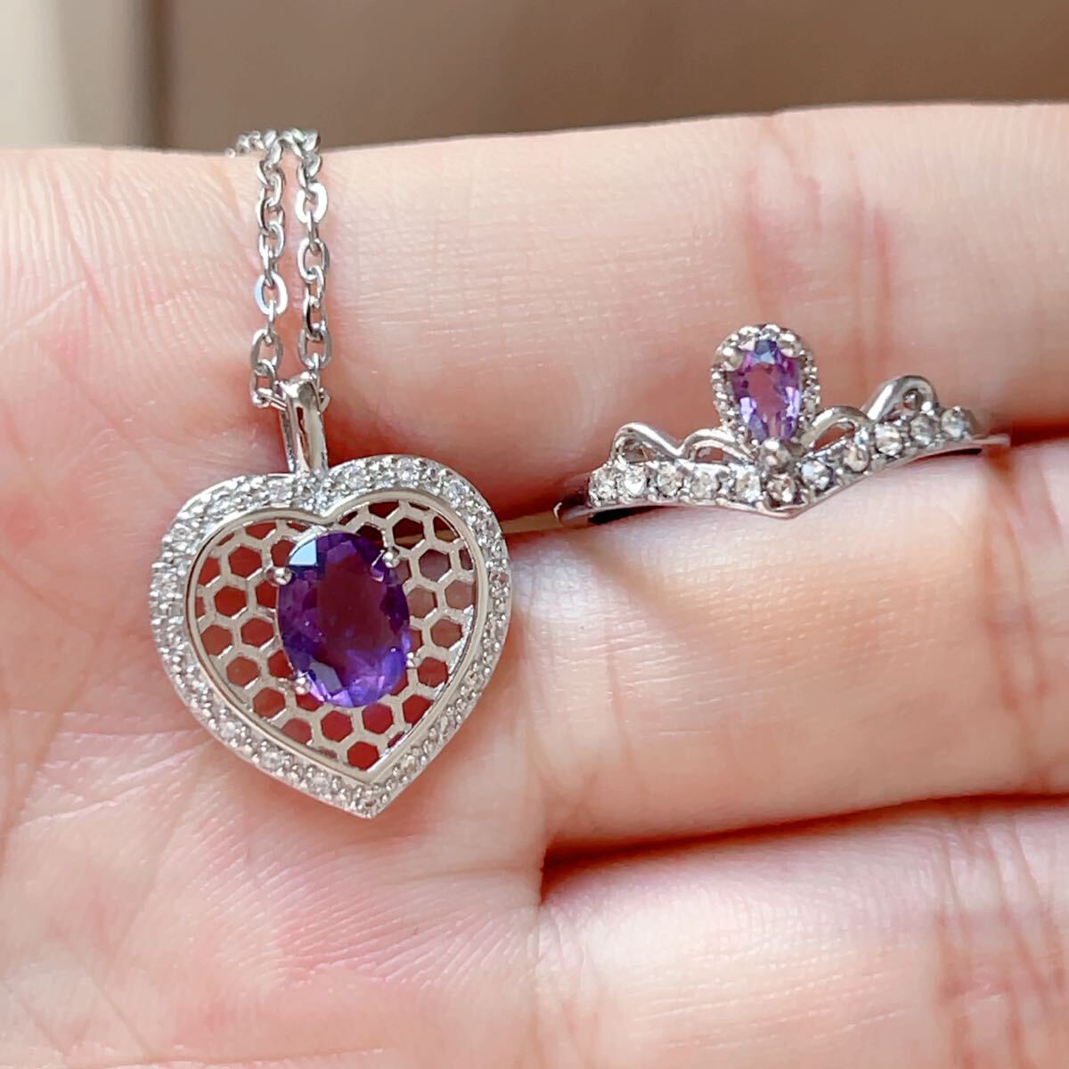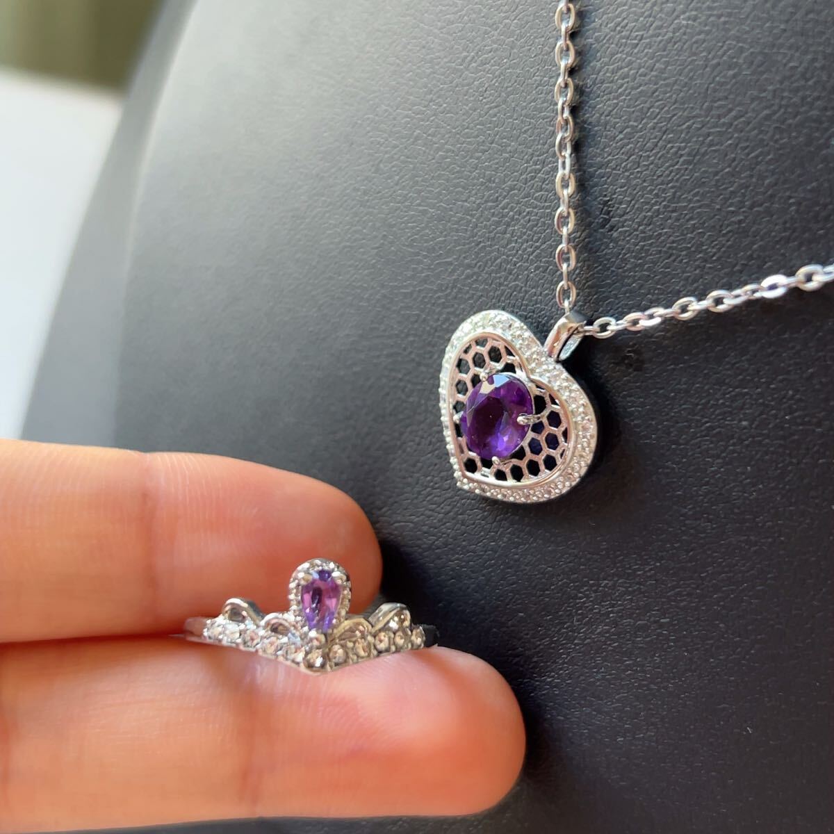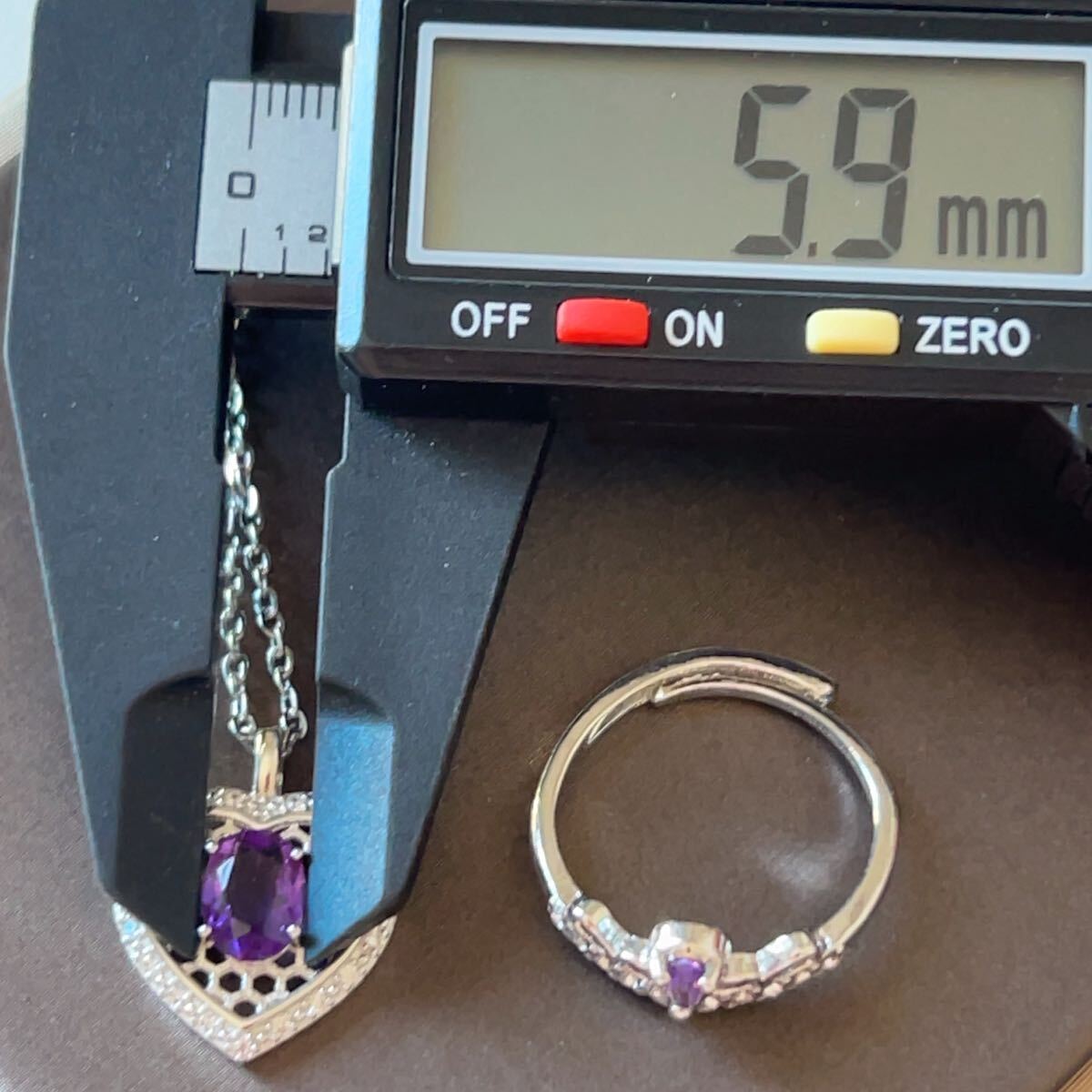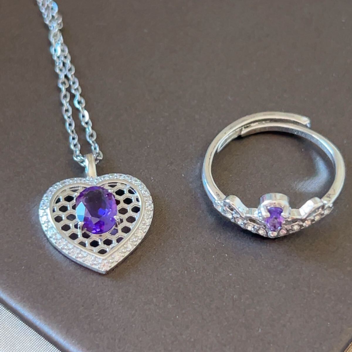 ◇紫水晶◇アメジスト◇面カット◇色濃いめ◇ネックレス ペンダント+リング(指輪)計2点◇天然石◇パワーストーン◇プレゼントに041S101742