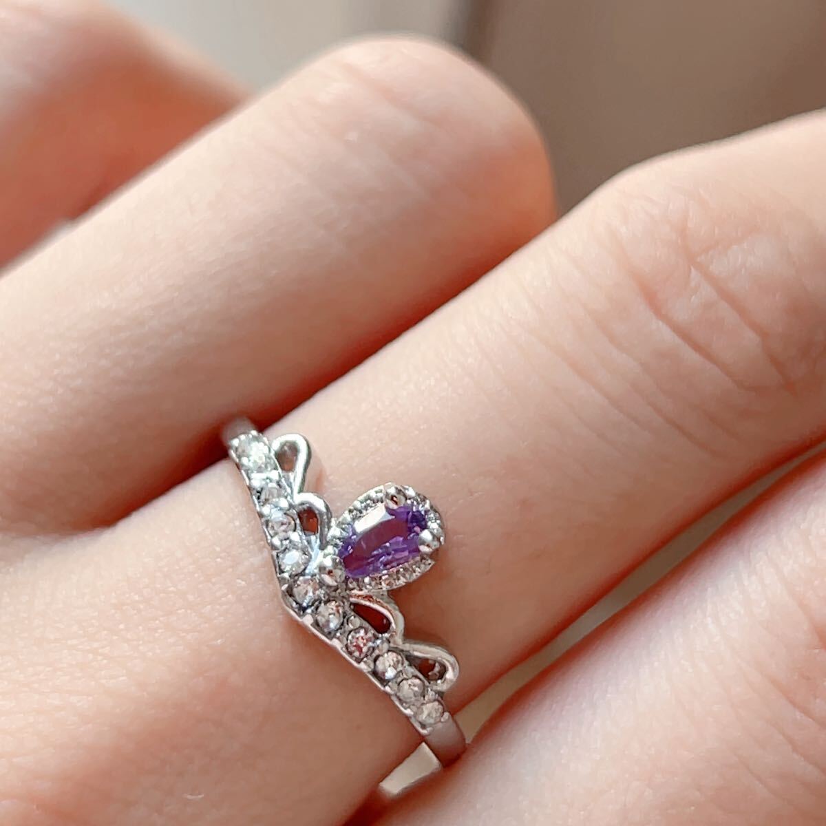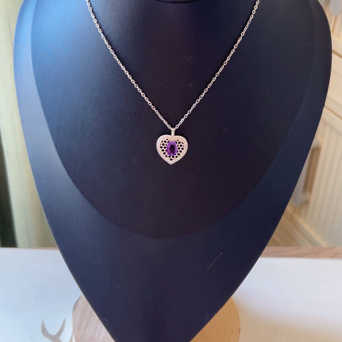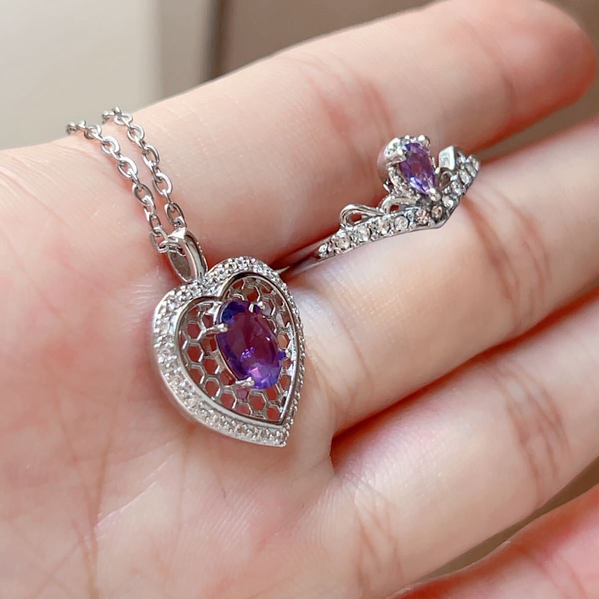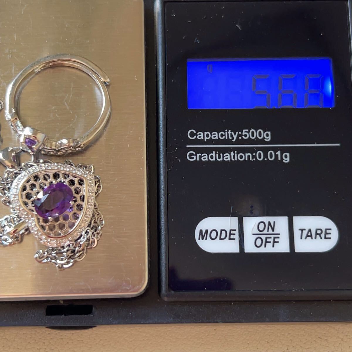 ◇紫水晶◇アメジスト◇面カット◇色濃いめ◇ネックレス ペンダント+リング(指輪)計2点◇天然石◇パワーストーン◇プレゼントに041S101742
