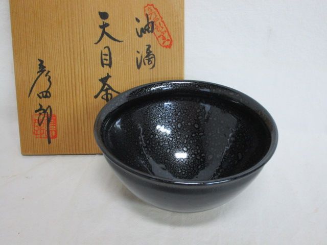 油滴の模様がきれいな、油滴天目茶碗です。 高台際には、信楽の陶芸家、 「西尾彦四郎」さんの銘があります。 箱も共箱で【本物保証】いたします。 ニュウやソゲ、スレや直しなどはありません。 ★★ 状態良好 、 美品 ★★ です。 ※箱にはヤケあり。 ※多少の古さや使用感、薄いスレ、くすみ、歪み等々・・・ 古さ特有の経年劣化が気になるようでしたら、ご入札を差し控えて頂くか、 早めのご質問にて、ご理解・ご了承お願い致します。 ※パソコンやスマホなどご覧いただく環境によって、色合いや素材など現品と 異なる場合がございますので、ご注意ください。 |