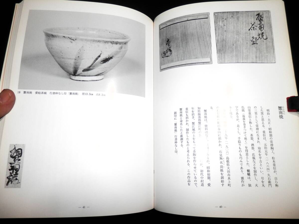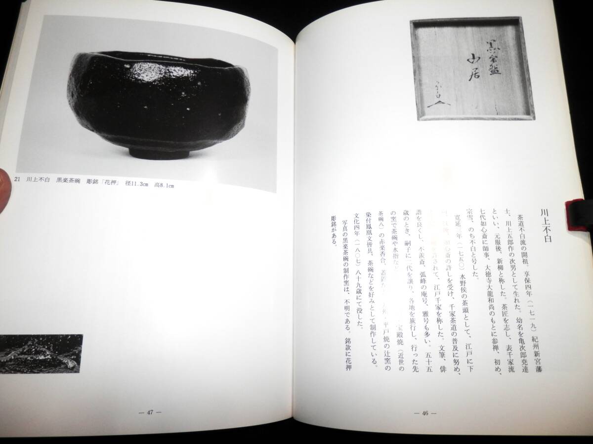 ■■『書籍』・・・■■ ●●「近世の茶碗」―十・・・●● ―” 黒田陶苑”― ◆黒田和哉。 ■発行日=平成7年10月20日。 ■著者=黒田和哉。 ■発行=(株)・黒田陶苑。 ■サイズ=18×25.5cm。 ■定価=記載なし。 ■状態=美品。 ●表紙に、多少のキズ、ヤケが有ります。 ●本誌内に、多少のヤケが見えますが ●大きなダメージは無く ●年代的には良い状態に思います。 ◆◆注意・・・◆◆ ★発行日より経年を経て下ります。 コンディションに係らず・古書で有る事を 充分に御理解の上・御入札下さい。 ★神経質な方は入札をご辞退下さい・・!! ●全・154頁・全白黒・上質光沢紙・・・!! ●図版・(作品)・60点・・・!! **”(図版とともに掲載)”** ◆正面/側面/見込/銘・(部分拡大)/他。 ◆No./窯/作品名/寸法/解説・(銘の解説)。 ★箱書・(総数)-26点。 ★銘・部分拡大・(総数)ー57点。 ●「花押落款集」・に・・・!! ◆34点。 ★No./窯/作家・作品名/「銘」・の解説/「銘」 ・掲載の近世茶碗の号数・頁。 ◆木津宗詮・黒楽茶碗・彫銘。 ・武者小路千家の茶匠。 ◆胡蝶印茶碗・印銘。 ◆徳川斎昭・黒楽茶碗・印銘。 ◆薮内家十二世・竹風紹智・膳所焼茶碗・彫銘。 ◆清厳宗渭・「赤楽茶碗」・彫銘。 ◆西の丸焼・(紀伊徳川家)・「赤楽茶碗」・印銘。 ◆桂又三郎・「備前緋襷茶碗」・彫銘。 ◆熊谷窯・(上野焼)・「上野紫蘇手茶碗」・彫銘。 ◆本庄宗泉・「赤楽茶碗」・彫銘。 ◆川上不白・「黒楽茶碗」・彫銘。 ◆俊白・(宗伯)・「絵志野沓茶碗」・彫銘。 ◆徳川治保・「黒楽茶碗」・印銘。 ◆江崎皿山焼・「染付間取草花文茶碗」・描銘。 ◆大谷尊由・「黒楽茶碗」・描銘。 ◆乾山焼・「錆絵芙蓉画賛茶碗」・描銘。 ◆佐伯定胤・「夢宇茶碗」・描銘。 ◆水野焼・「黒楽茶碗」・彫銘。 ◆八木一夫・「粉引茶碗」・彫銘。 ◆大谷光蛍・(現如上人)・「赤楽茶碗」・印銘。 ◆大心義統・「赤楽茶碗」・彫銘。 ◆鳴海織部焼・「鳴海織部茶碗」・彫銘。 ◆水野忠成・「黒楽茶碗」・彫銘。 ◆二代・加藤作助・(春曲)・「絵志野茶碗」・彫銘。 ◆木内克・「トンボ絵茶碗」・描銘。 ◆熊谷守一・「絵志野茶碗」・描銘。 ◆益田鈍翁・「絵志野茶碗」・描銘。 ◆初代・宮川香山・「杜若絵茶碗」・印銘。 ◆円山伝衣・「楓絵茶碗」・描銘。 ◆川喜田半泥子・「小井戸形茶碗」・彫銘。 ◆初代・徳田八十吉・「深厚釉茶碗」・描銘。 ◆平沢九朗・「志野茶碗」・彫銘。 ◆渡辺又白庵・(宗玄焼)・「黒楽茶碗」・印銘。 ◆今泉源内・「鉄釉茶碗」・彫銘。 ◆四代・加藤幸兵衛・「絵志野茶碗」・彫銘。 ●蒐集・資料などの参考に・・・!! ●探されていた方は、この期会に・・・!! ●以下・詳細をご覧ください・・・!! ◆掲載案内は・抜粋して下ります。 ◆掲載内容は・Q&Aより・問い合わせ下さい。 ●数字記載は目視です・間違いは御容赦下さい。 ●●●●●●●●●●●●●●●●●●●●●●●●●●● ◆◆◆◆◆◆◆◆◆◆◆◆◆◆◆◆◆◆◆◆◆◆◆◆◆◆◆ ■■『目次』・・・■■ ■■『近世の茶碗』・・・■■ ●1・浅野本来・「信楽筆洗茶碗」。 ・行書枠なし印「本来」。 ★大正期の教育家。 ●2・石坂泰三・「大樋釉手造茶碗」。 ・丸の中に・「三」・を刻す。 ★大正・昭和期の財界人。 ●3・三代・市川左団次・「赤楽茶碗」 ・長角印・「左」。 ★昭和期の歌舞伎俳優。 ●4・初代・伊藤東山・「初霞茶碗」。 ・丸印・「陶山」。 ★京都の陶工。 ●5・乾山焼六代・浦野乾也・「乾山写浅草寺茶碗」。 ・描銘・「乾山」。 ★明治・大正期の今戸焼の陶工。 ●6・江戸・高原焼・「志野茶碗」。 ・花押印・「止々庵」・印銘。 ★四代将軍徳川家綱に召され、浅草・本願寺前に 築窯したので・「浅草焼」・の別名もある。 ●7・遠州信楽・「信楽切形茶碗」。 ・銘なし。 ●8・奥田楽水・「信楽灰釉茶碗」 ・隷書不定形印・「楽水」。 ★・明治・大正・昭和期の信楽焼の陶工。 ●9・加春日山窯・(金沢)・「色絵羅漢図茶碗」。 ・長角印・「金府」。 ●10・加藤宇助・「瀬戸黒茶碗」。 ・彫銘・「う」。 ★瀬戸赤津窯の陶工。 ●11・初代作助・加藤景清・「古瀬戸釉茶碗」。 ・小判印・「壽濟」。 ★江戸時代中期の瀬戸・赤津窯の陶工。 ●12・二代作助・加藤景義・「絵志野若松図茶碗」。 ・(赤津窯)。 ・花押印・「作」。 ●13・三代作助・加藤精一・「絵志野茶碗」。 ・(赤津窯)。 ・草書瓢形印・「春山」。 ●14・加藤閑陸・「絵志野茶碗」。 ・彫銘・「花押」。 ★尾張・瀬戸の名門陶家の一つ。 ●15・加藤春丹・「瀬戸黒茶碗」。 ・瀬戸窯本家二十二世。 ・小判印・「春丹」。 ★瀬戸窯本家十九代春清の子。 ●16・加藤弥藤治・「黒織部黒茶碗」。 ・彫銘・「道二」。 ★明治初年ごろの瀬戸・品野窯の陶工。 ●17・金石窯・(松浦系唐津)・「黒唐津茶碗」。 ・銘なし。 ●18・蟹南焼・「蛍絵茶碗」。 ・行書枠なし印・「蟹南焼」。 ★明治・大正の常滑陶工。 ●19・鎌倉焼・「赤楽梅絵茶碗」。 ・楕円印・「