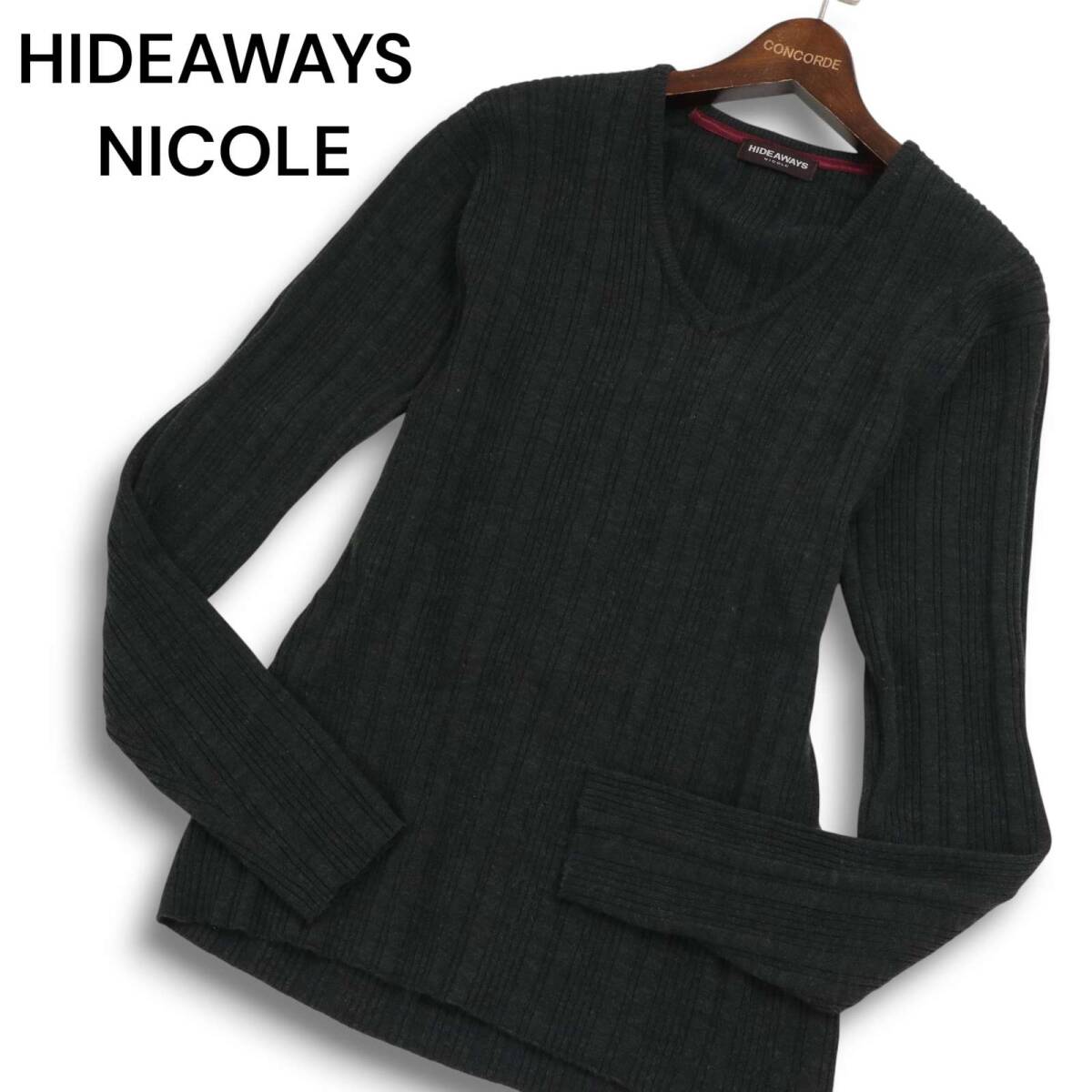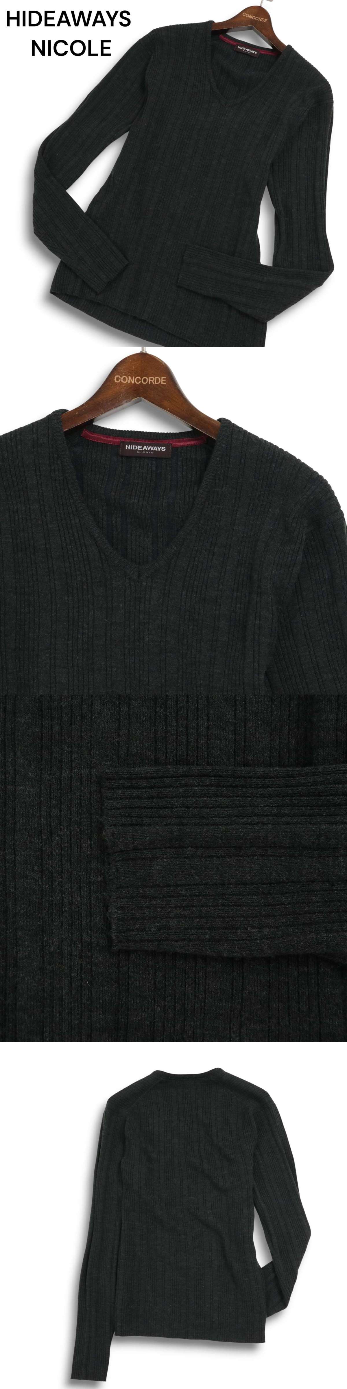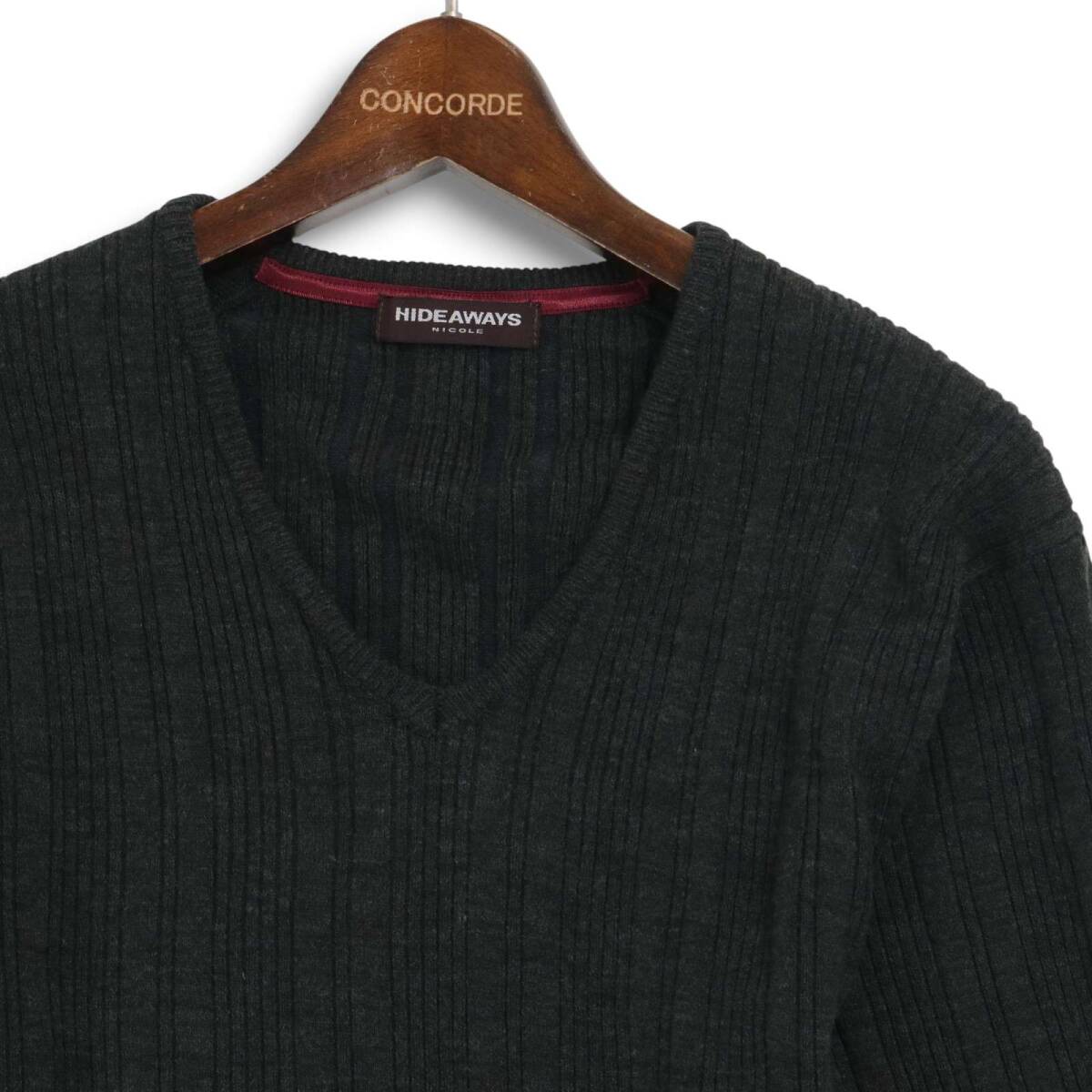 HIDEAWAYS NICOLE ハイダウェイ ニコル 秋冬★ Vネック リブ ニット セーター カットソー Sz.46 メンズ 灰 グレー