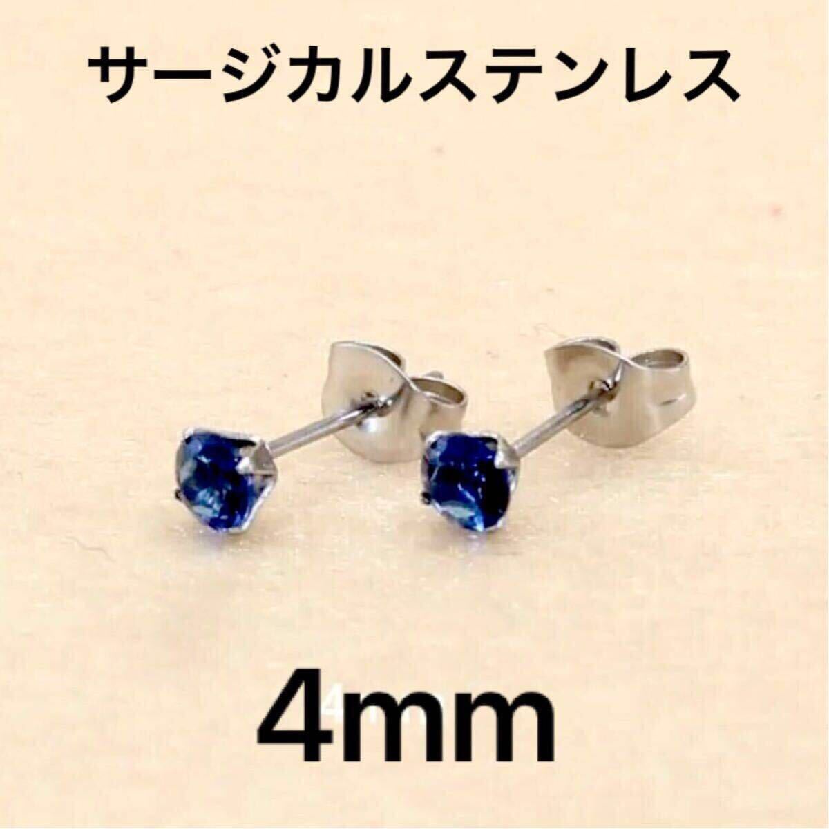 4mmのCZサファイアピアスです。ロイヤルブルーの輝きが魅力のシンプルなユニセックスピアスです。