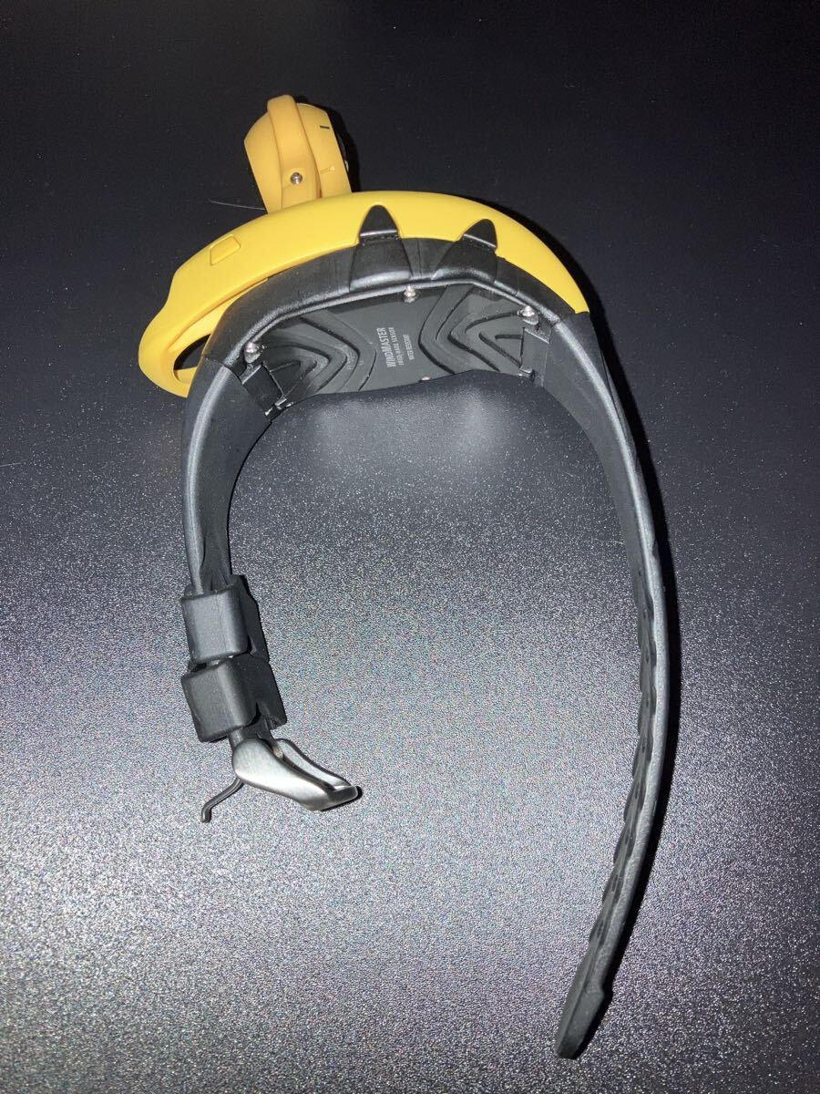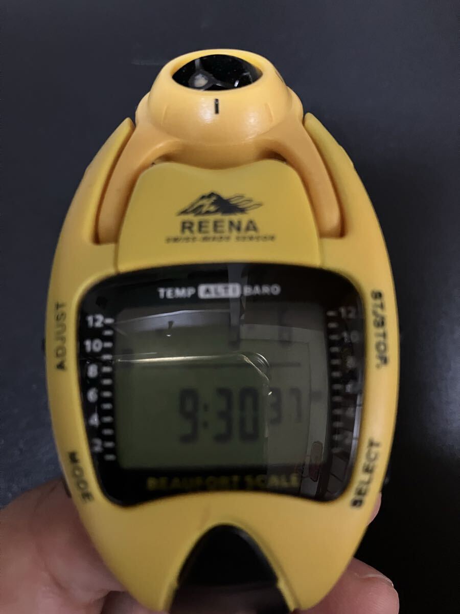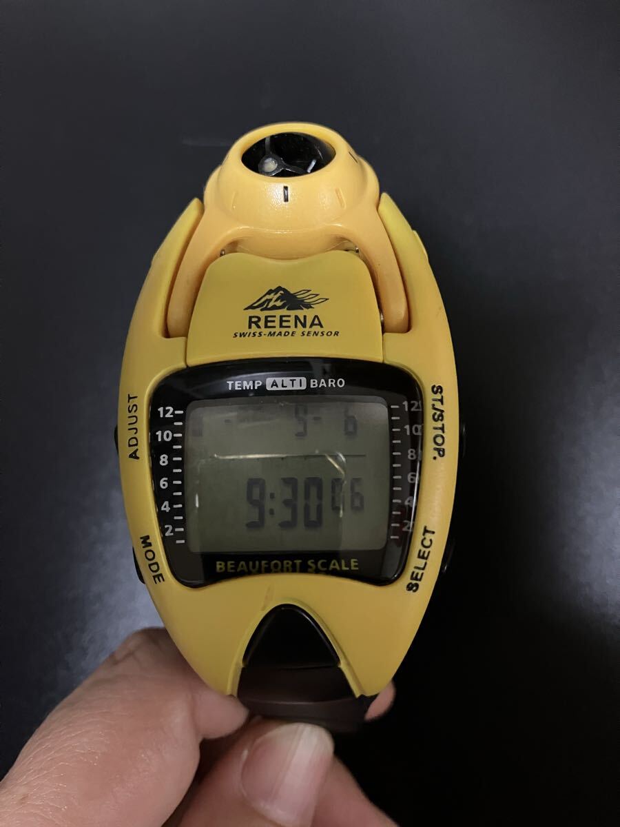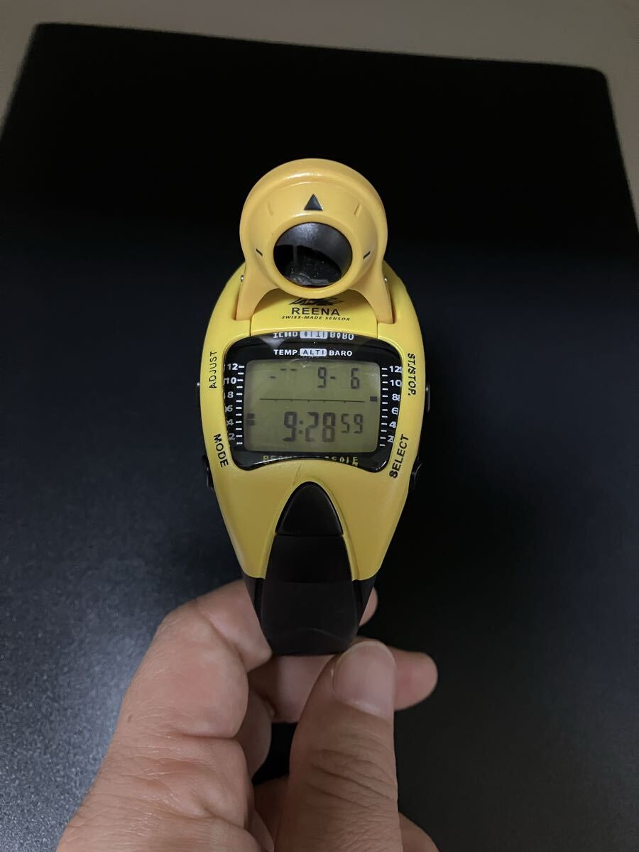 温度計とストップウォッチ機能を備えたイエローのデジタル腕時計