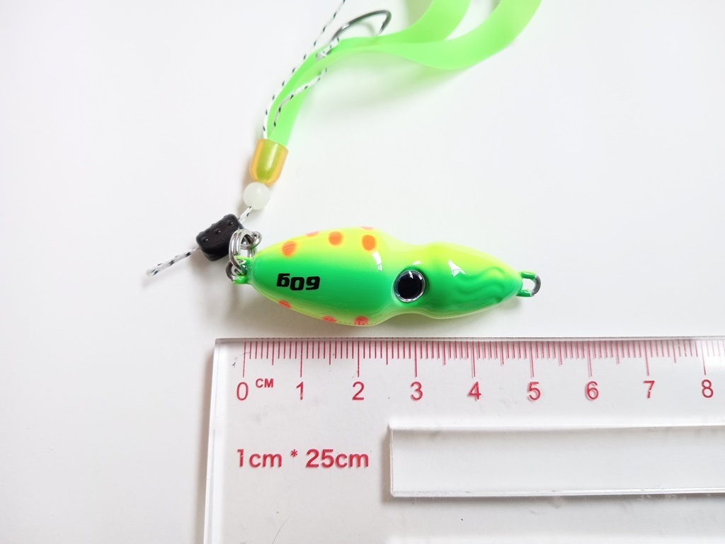 本体に夜光塗料が塗られており、深くて光が届きにくい場所・夜間(ナイトゲーム)に発光し、魚にアピールします。