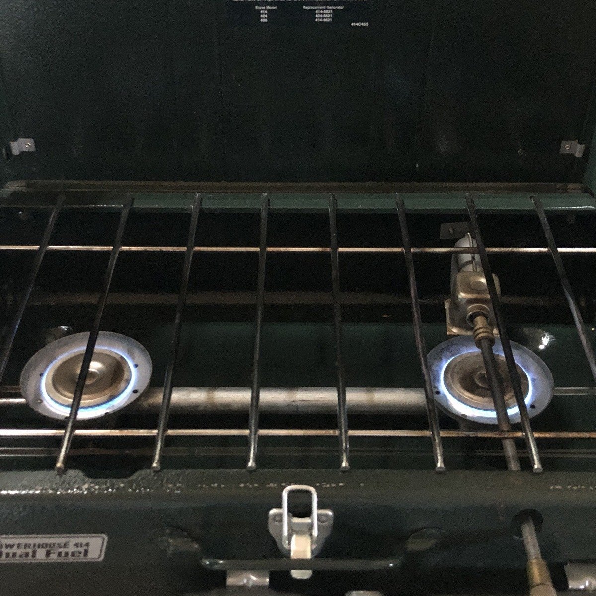 こちらはColeman コールマン POWERHOUSE パワーハウス Unleaded 414 ツーバーナー コンロ 95年5月 イージーポンピング付きです。 中古品です。 コールマンのパワーハウスツーバーナー414は、ホワイトガソリンでも無鉛ガソリンでも使える デュアルフューエルタイプです。 キャンプなどのアウトドアはもちろん、災害時の備えとしても。 ポンピングに便利なアクセサリー「イージーポンピング」付きです。 この機会にいかがでしょうか。 【コンディションについて】 動作確認済みです。 多少な使用感や小傷があります。 詳細につきましては下記画像も併せてご参照ください。 ![]() 再良市場の他のお品物はこちらから!