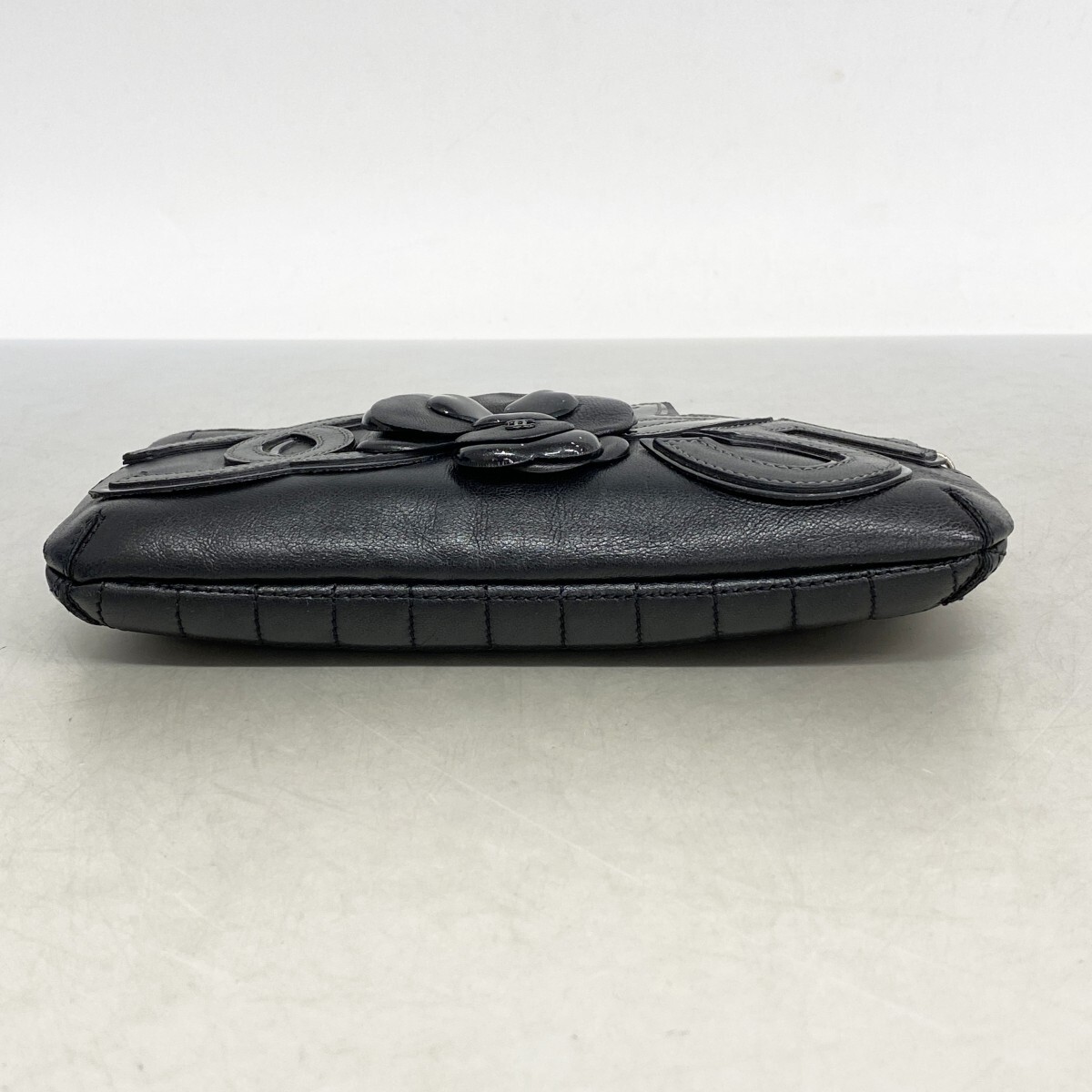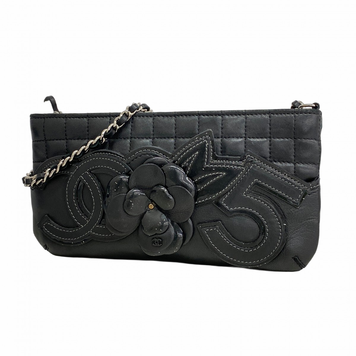 【5mc3654-h】シャネル ショルダーバッグ カメリア チェーンショルダー チョコバー ラムスキン パテントレザー ブラック シルバー金具