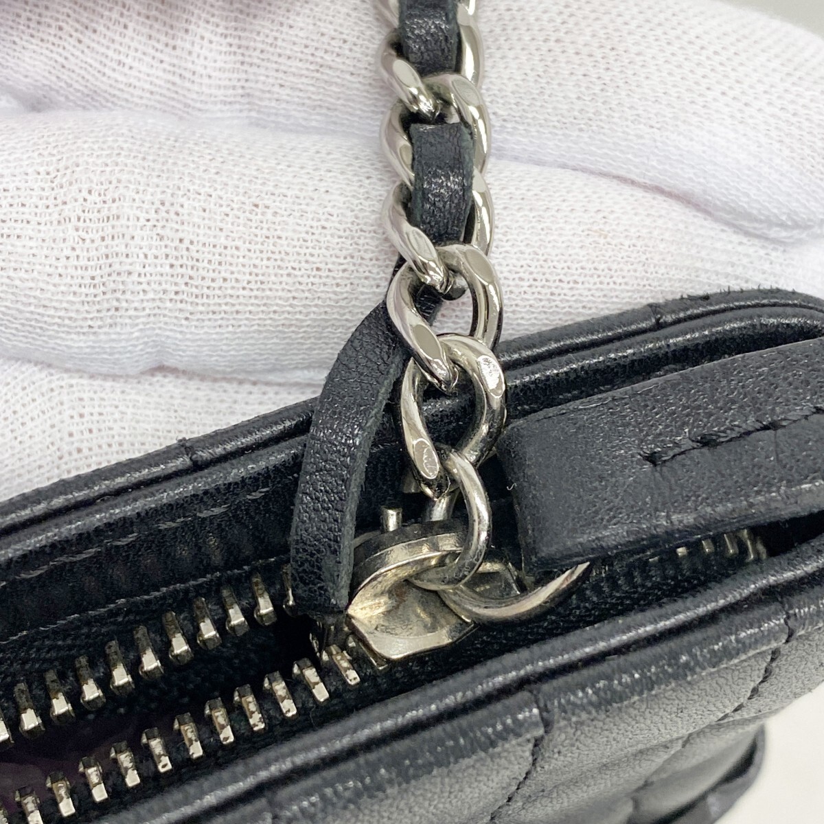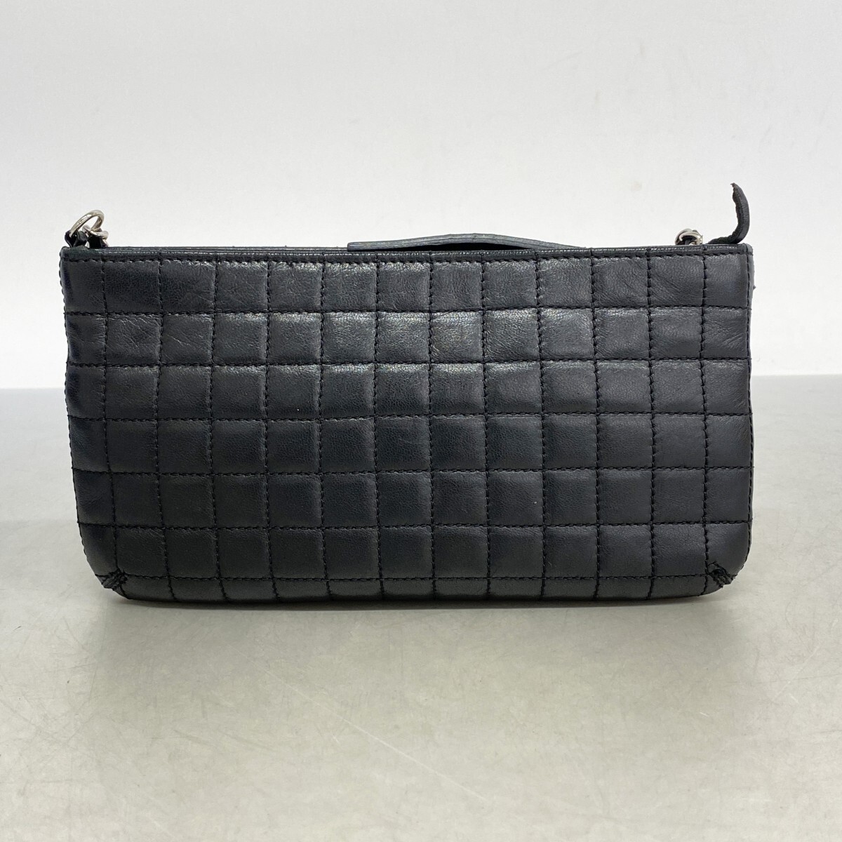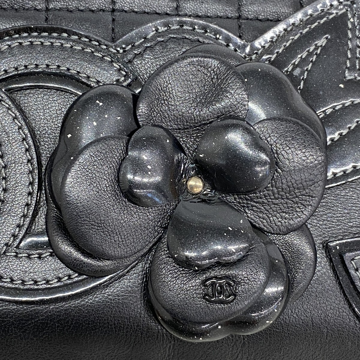 【5mc3654-h】シャネル ショルダーバッグ カメリア チェーンショルダー チョコバー ラムスキン パテントレザー ブラック シルバー金具