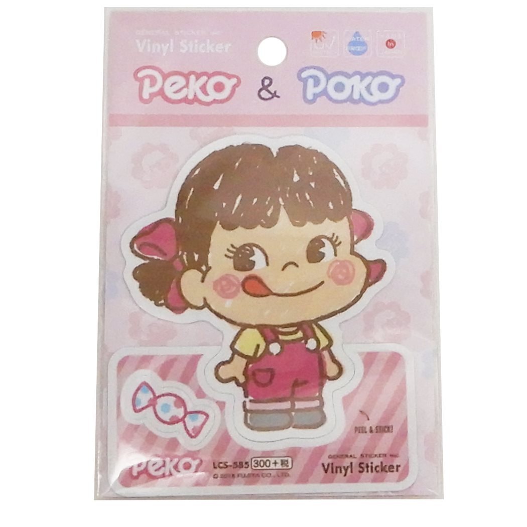 自転車やパソコンいろんなところに貼って楽しい防水ステッカー ミルキーでお馴染み不二家のマスコットキャラクター《ペコちゃん》の可愛いステッカー防水仕様なので屋外使用もOK◎ほかにもいろんなデザインあるからお気に入りみつけてね♪■サイズ:約72×95mm【Made in Japan】