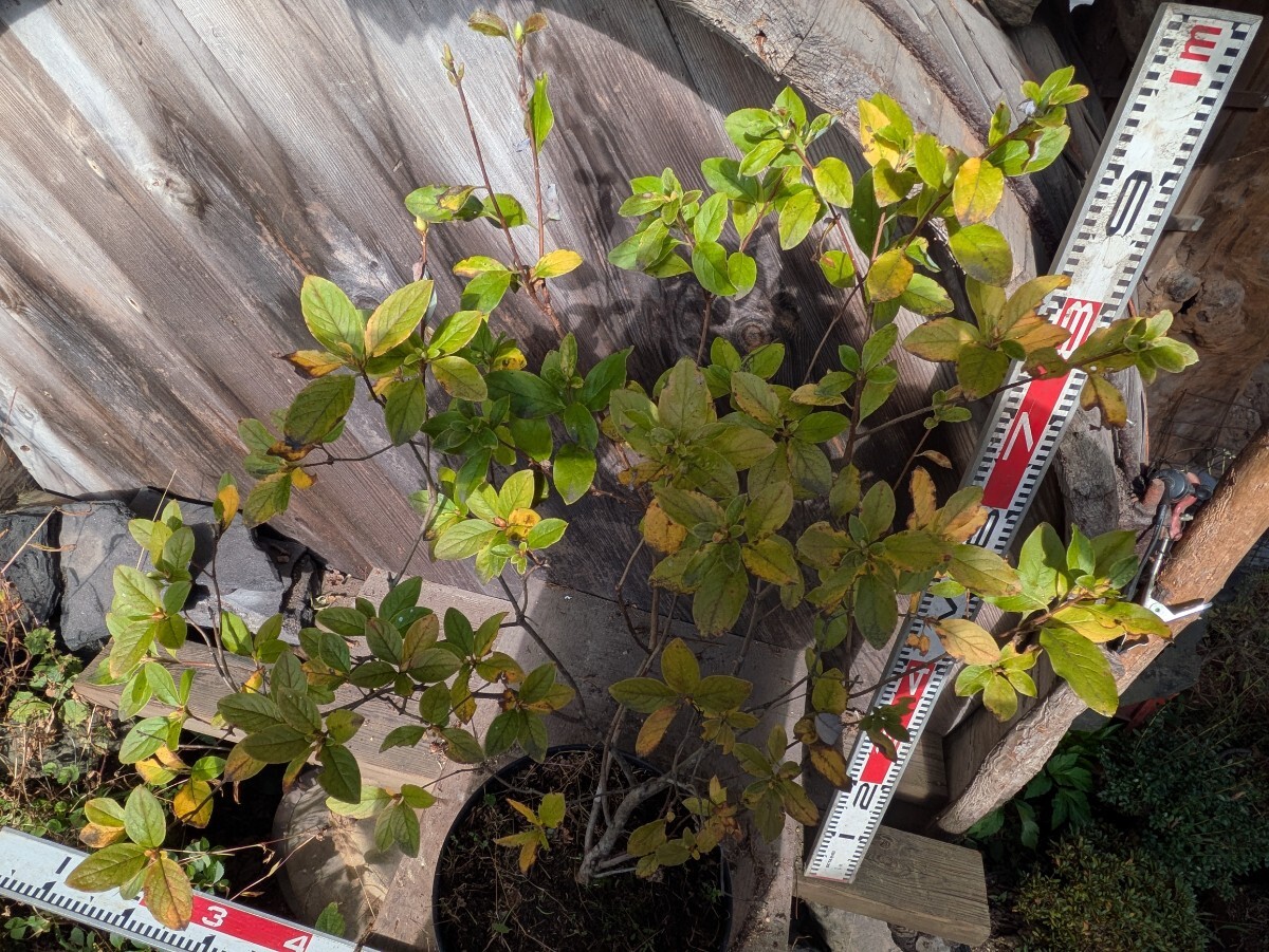 およそは60x45x95cmの枠に入るサイズ。根本付近からの高さは70cmくらい。浅間山のヒョロヒョロ上に伸びやすい口紅花です。(用土によって花色が変化しやすい体質でピートモスを沢山使うと赤花に成りがち) ウラジロヨウラクツツジなので幹は太く成らず ヒョロヒョロ伸びます。種から30年以上経過しており 今のプラ鉢に5年くらい経過してるので鉢は老朽化してます。来春の花芽は沢山付いてます。発送梱包の際に痛むヶ所が有るかもしれません。佐川急便にて発送する事も有ります。