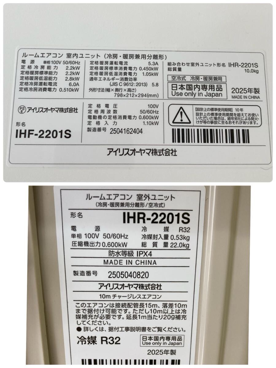 美品 IRIS OHYAMA【IHF-2201S】アイリスオーヤマ ルームエアコン おもに6畳用 2025年製