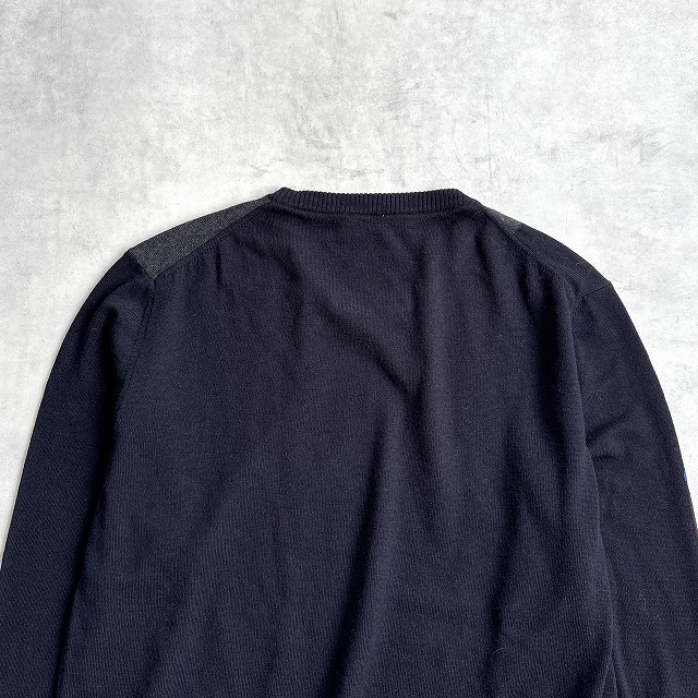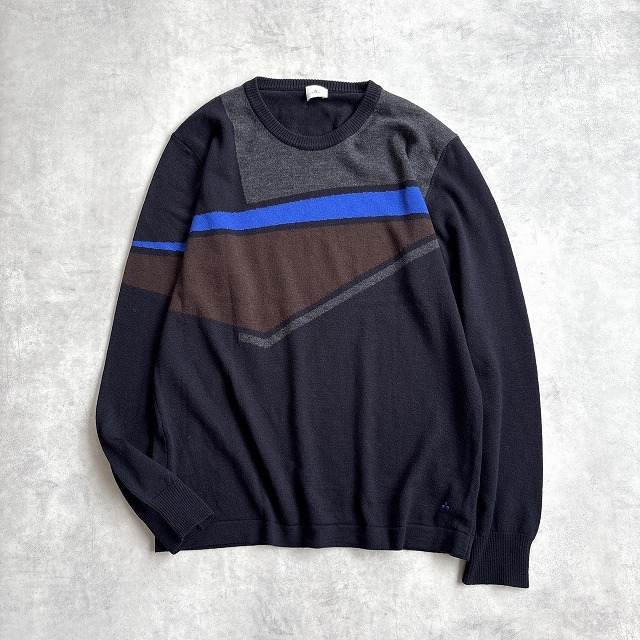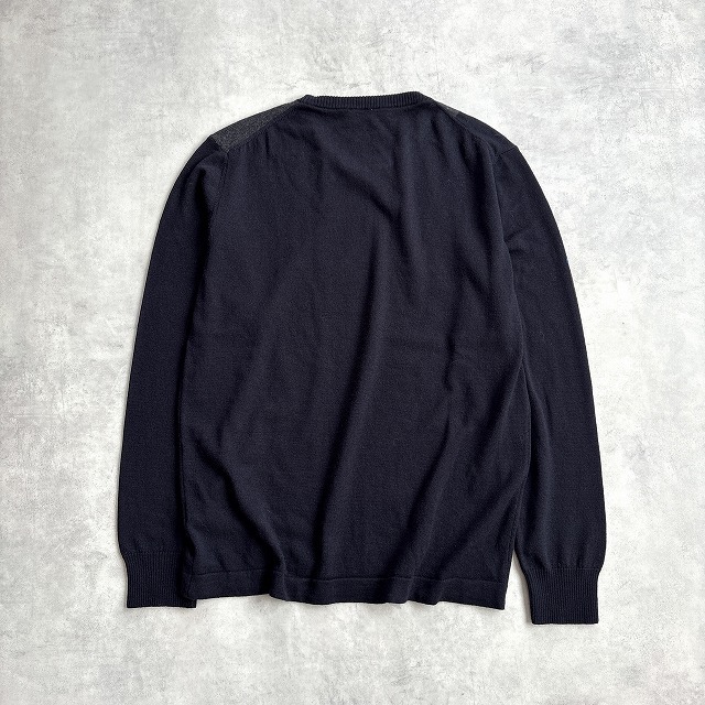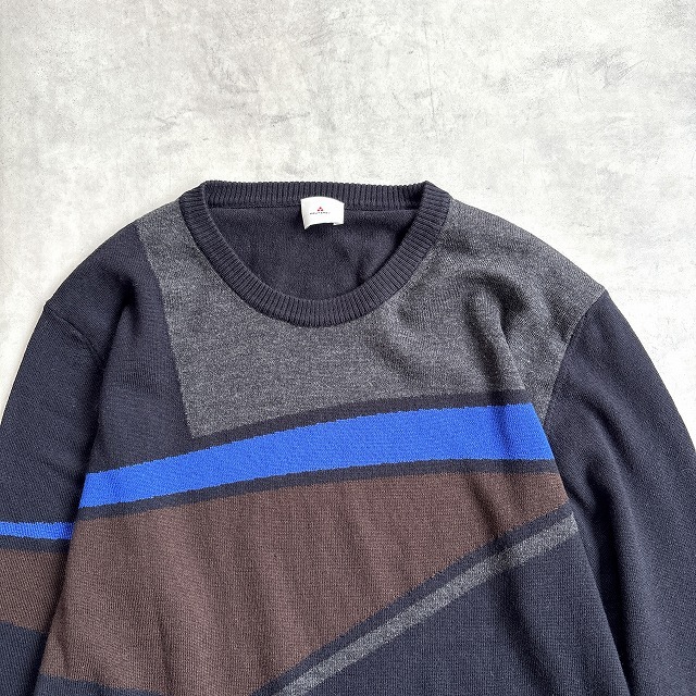 美品 PEUTEREY ピューテリー イタリア製 洗える♪ ウール100% ハイゲージ 幾何学柄 クルーネック ニット セーター メンズ (XL) 黒 /r-989