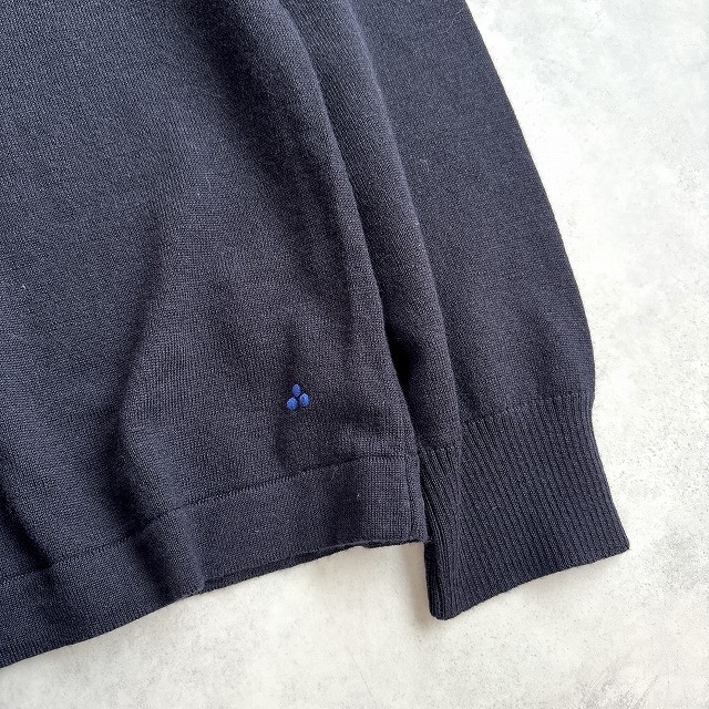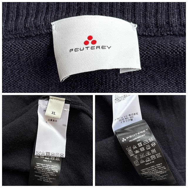 美品 PEUTEREY ピューテリー イタリア製 洗える♪ ウール100% ハイゲージ 幾何学柄 クルーネック プルオーバー ニット セーター メンズ(XL) 黒 /r-989