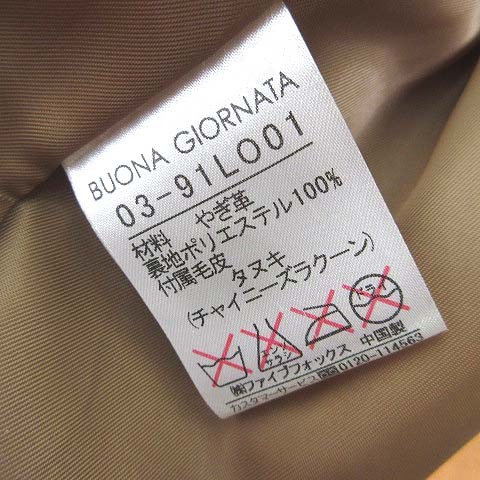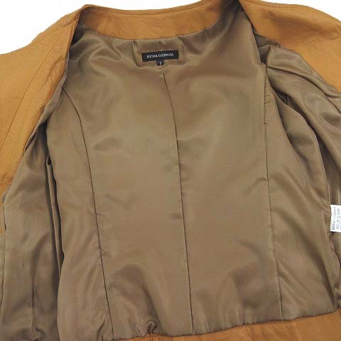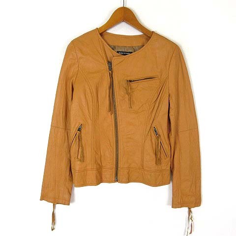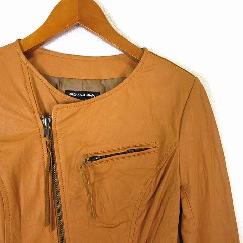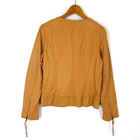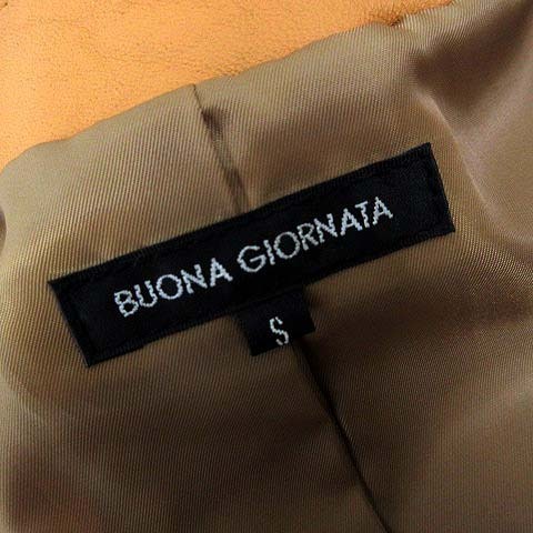 ボナジョルナータ BUONA GIORNATA ライダースジャケット ゴートレザー ノーカラー クリンクル加工 ジップアップ 山羊革 S キャメル レディース