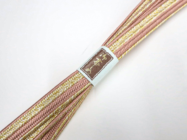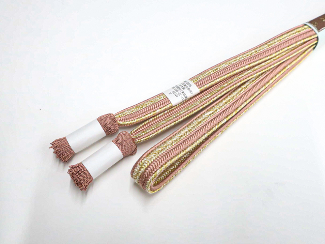 《古美術京松》和装小物 帯締め 平組 撚房 金糸 未使用品 美品 帯締 r7w10-1861