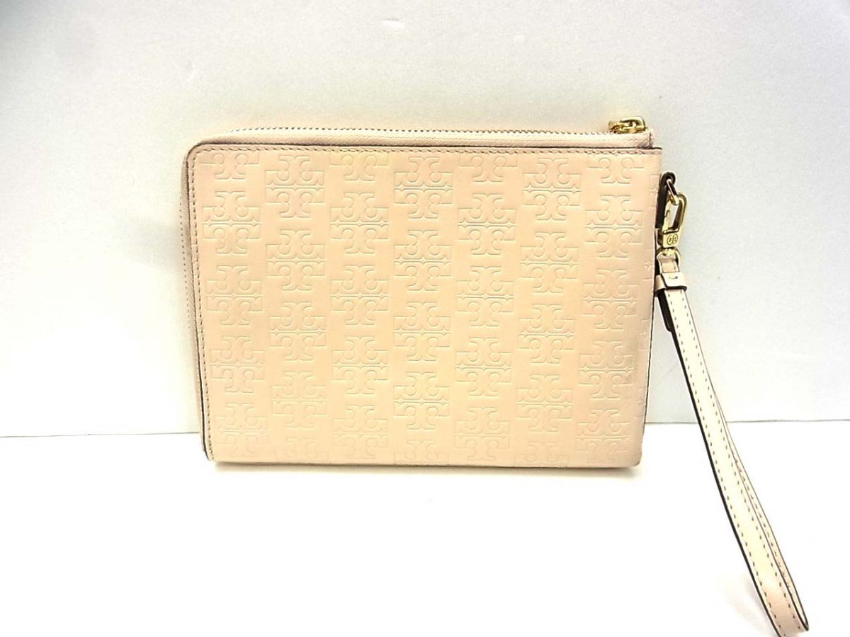 ◆TORYBURCH トリーバーチ ポーチ クラッチバッグ エンボスロゴ 本革 EMBOSSED T LARGE WRISTLET レディース