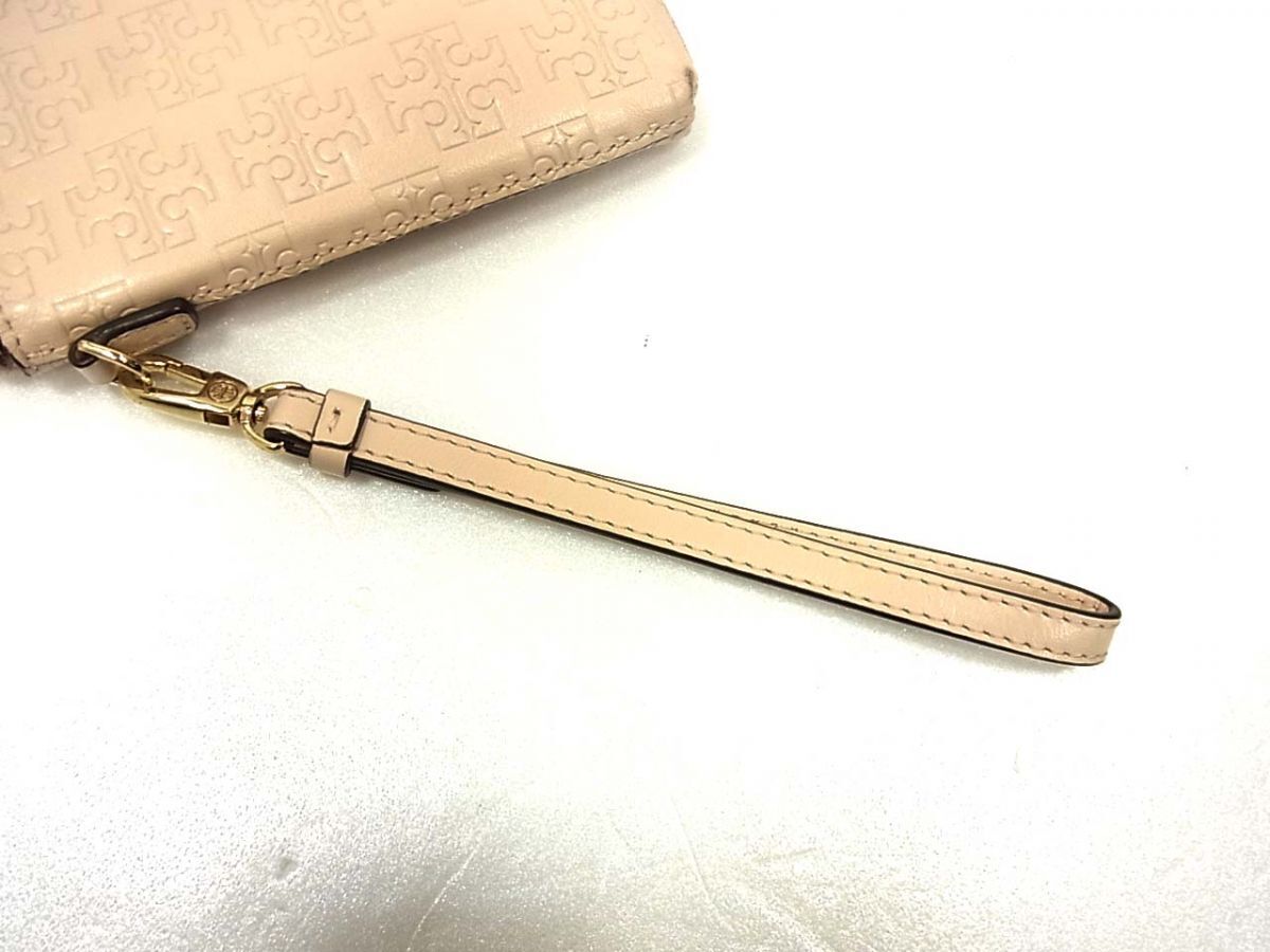 備考レザーにTORY BURCHのロゴをエンボス加工したエレガントなリストレット。