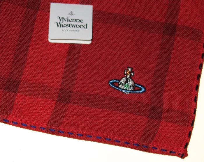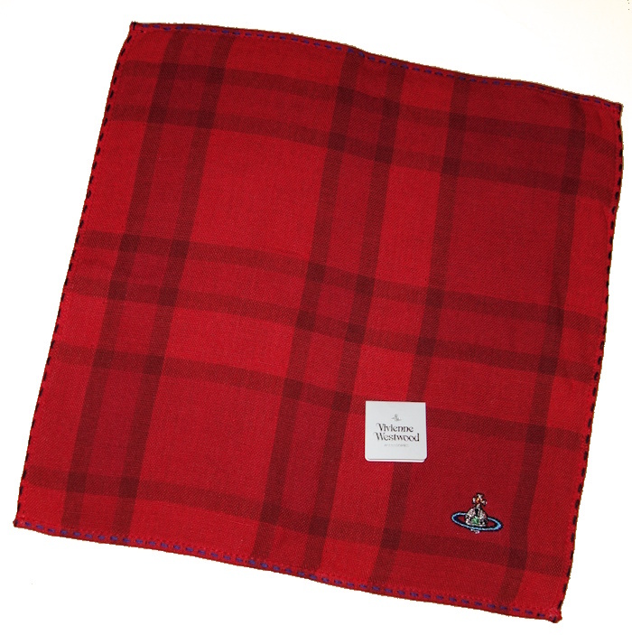 Vivienne Westwood ヴィヴィアン・ウエストウッド★ガーゼタオルハンカチ★チェック柄xオーブ刺繍★レッド系