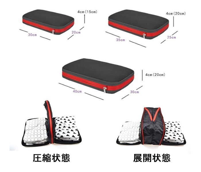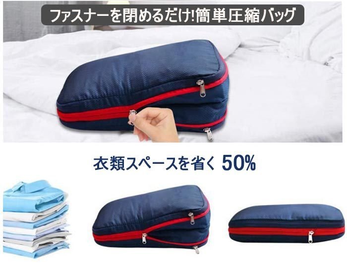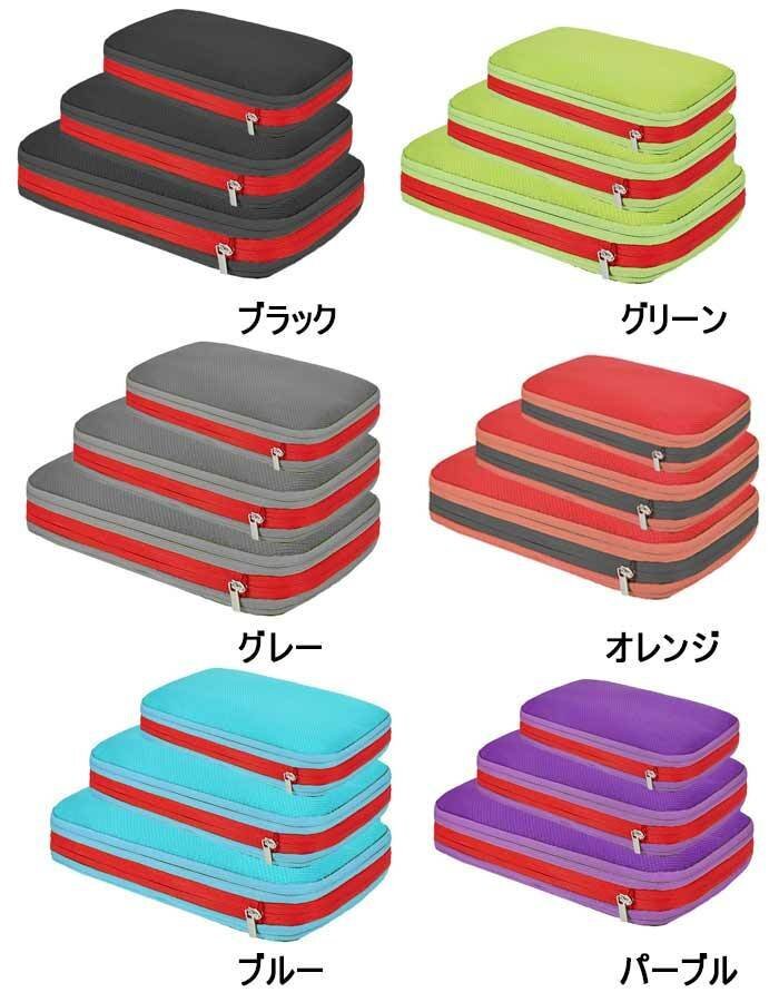 圧縮バッグ 3点セット トラベル 圧縮袋 旅行圧縮袋 ファスナー 大容量 衣類 仕分け 軽量 撥水 出張 整理 ☆カラー/6色選択/1点