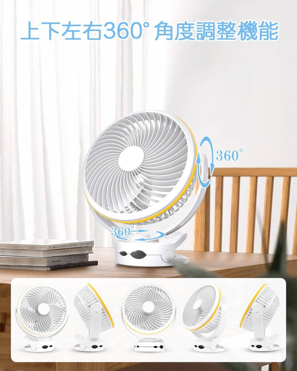 人気 卓上クリップ扇風機 充電式 USB 静音 大容量電池 10000mAh タ