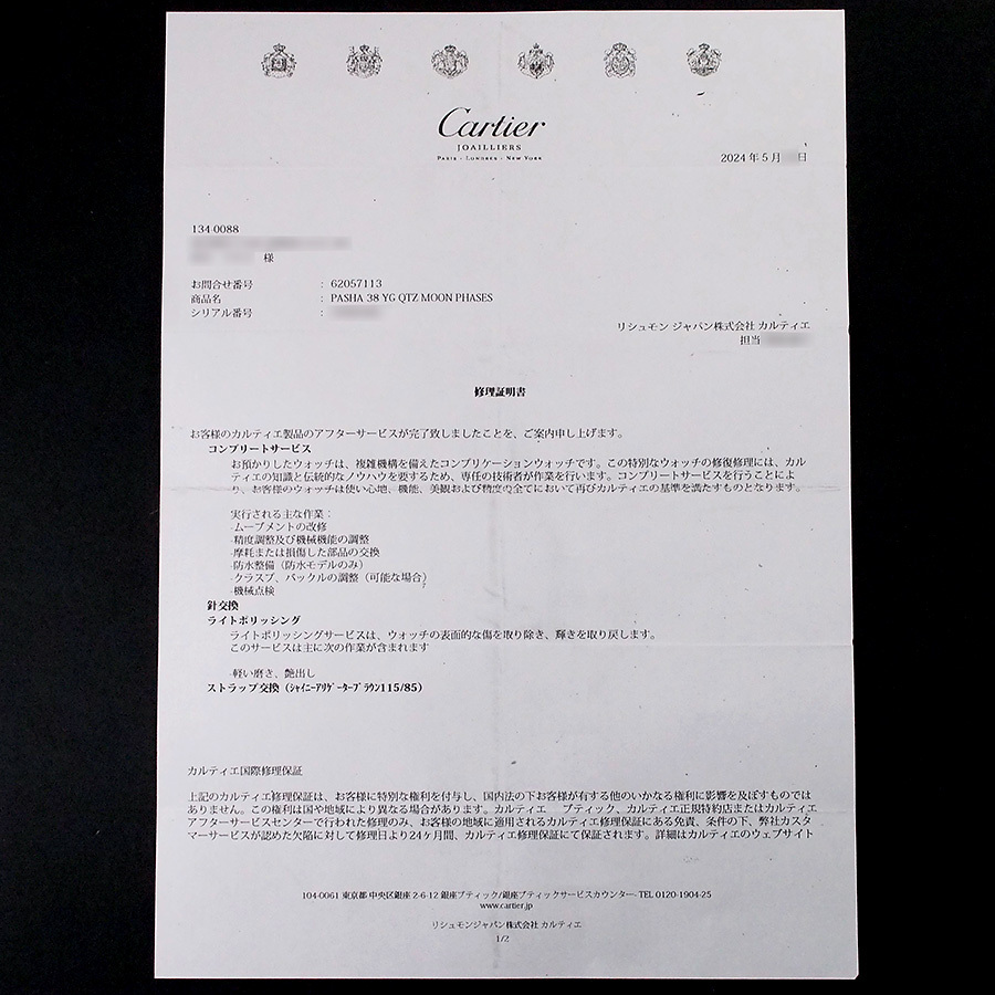 | 付属品 | メーカー修理明細書コピー(2024/7 コンプリートサービス他)、ピン |