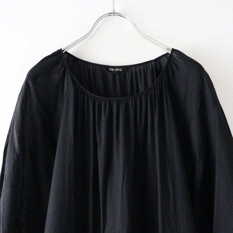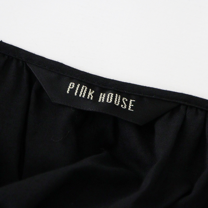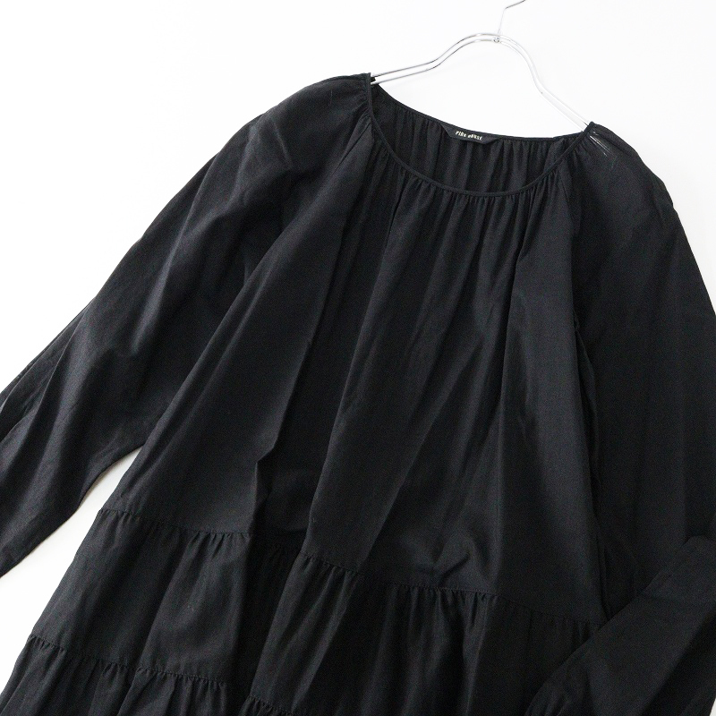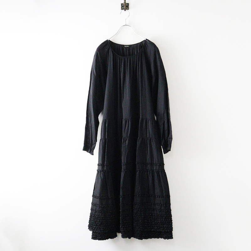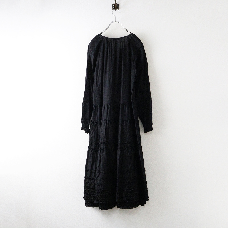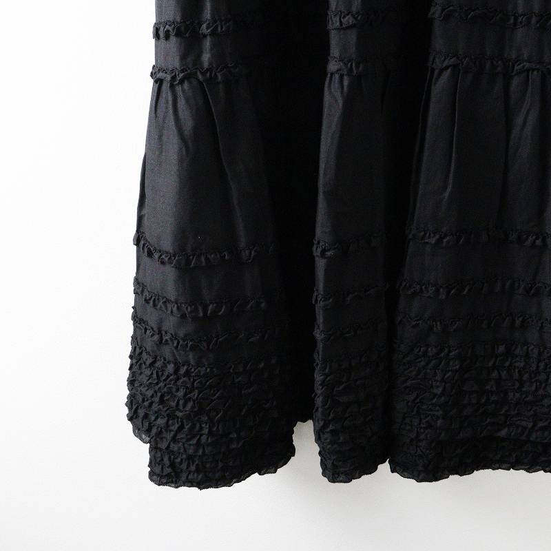 美品 ピンクハウス PINK HOUSE 綿ローン ピコフリル ティアードギャザーロングワンピース ブラック┃黒 ボリューム【2400014648041】
