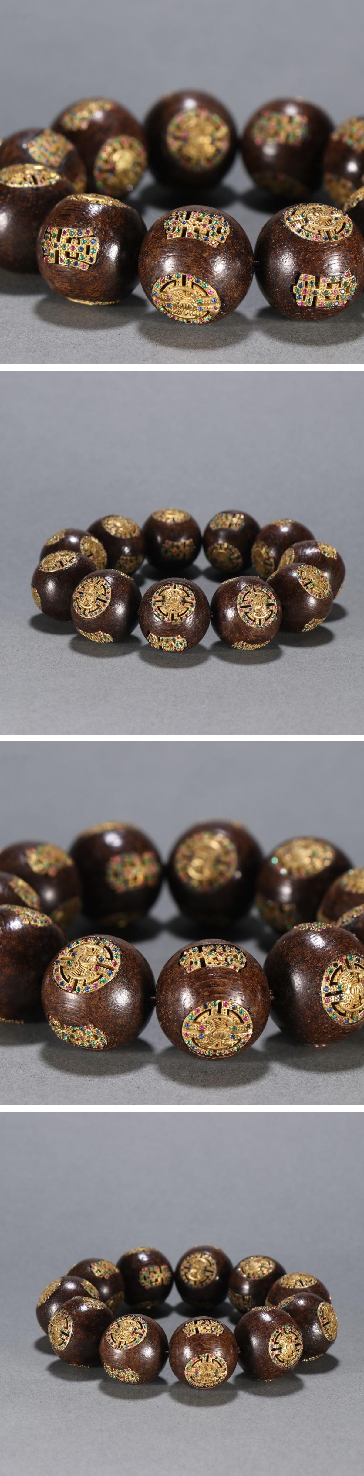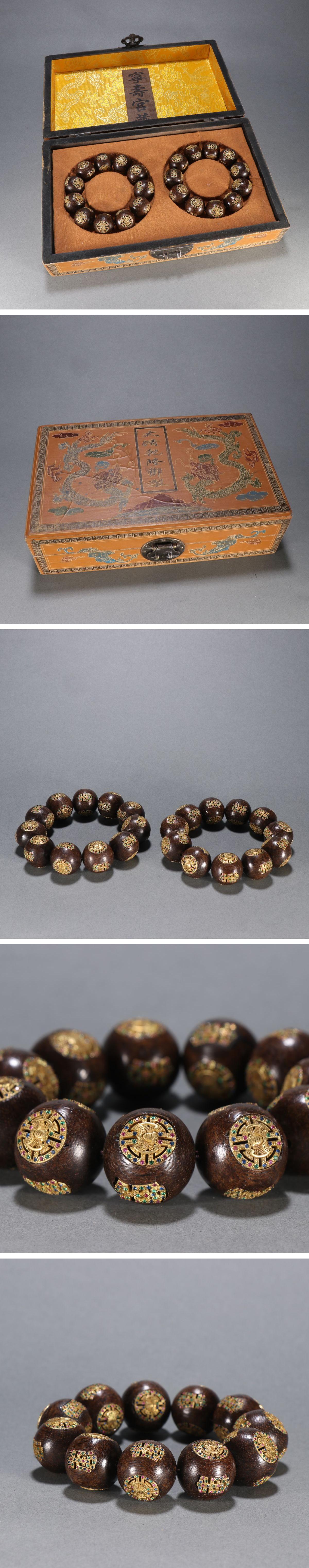 【清】某有名オークション購入 清時代 古珎香 象嵌団寿紋数珠一双 材質保証 古置物 古擺件 古美術 時代コレクション7L10-PF10
