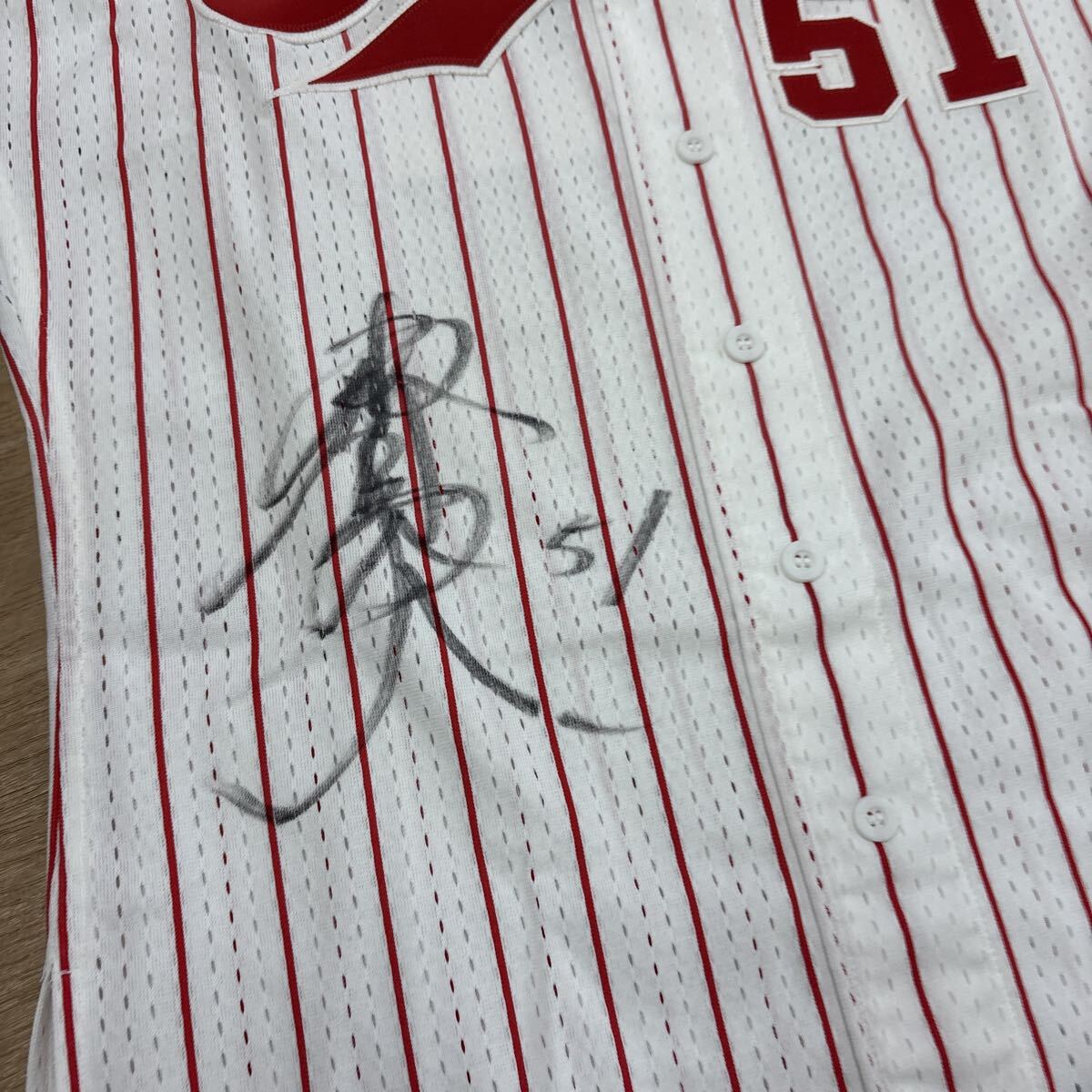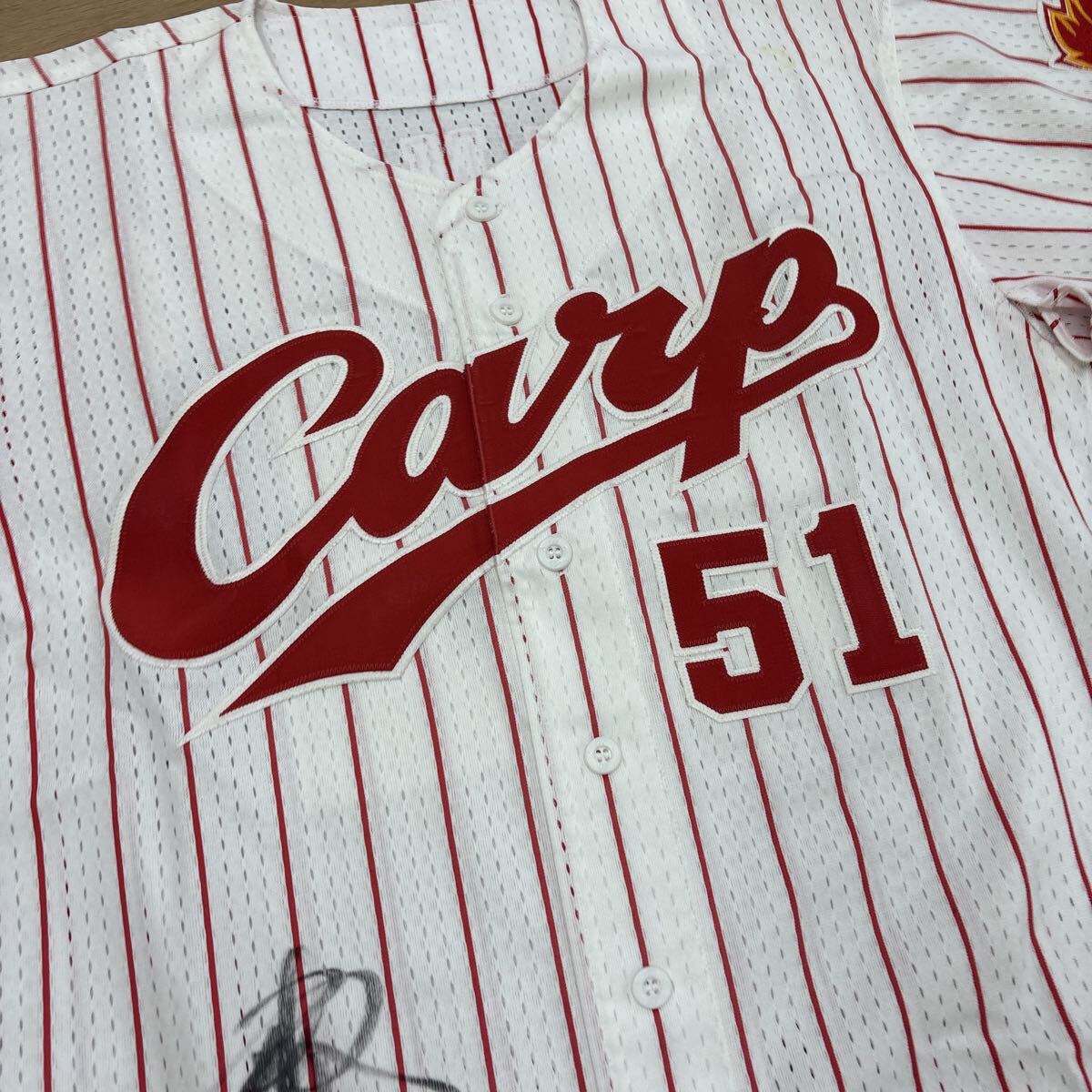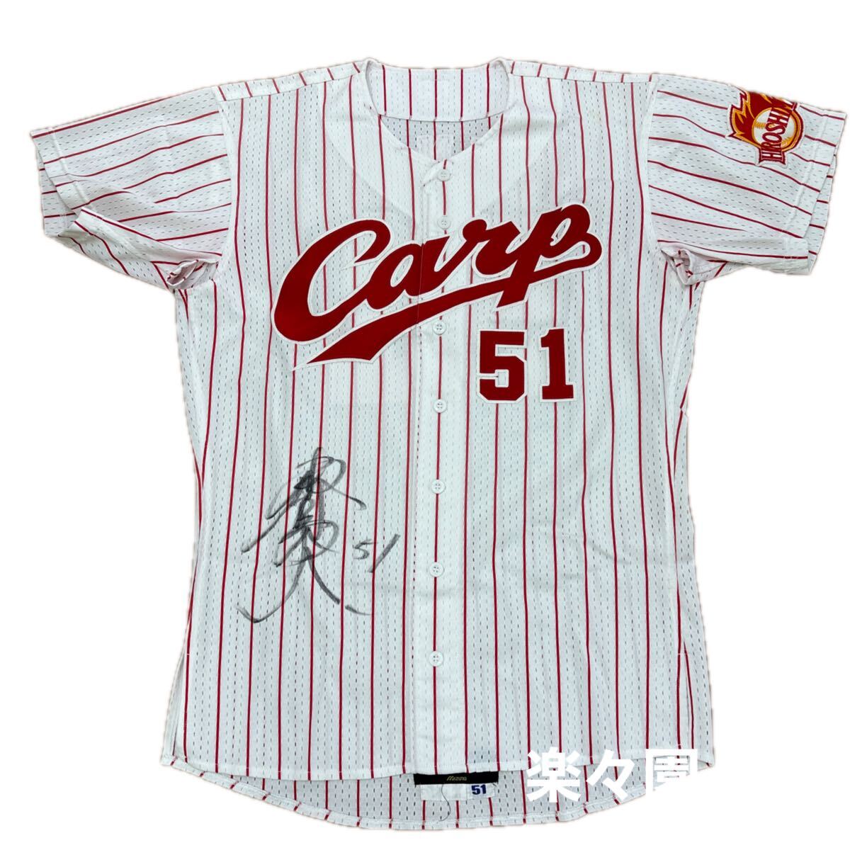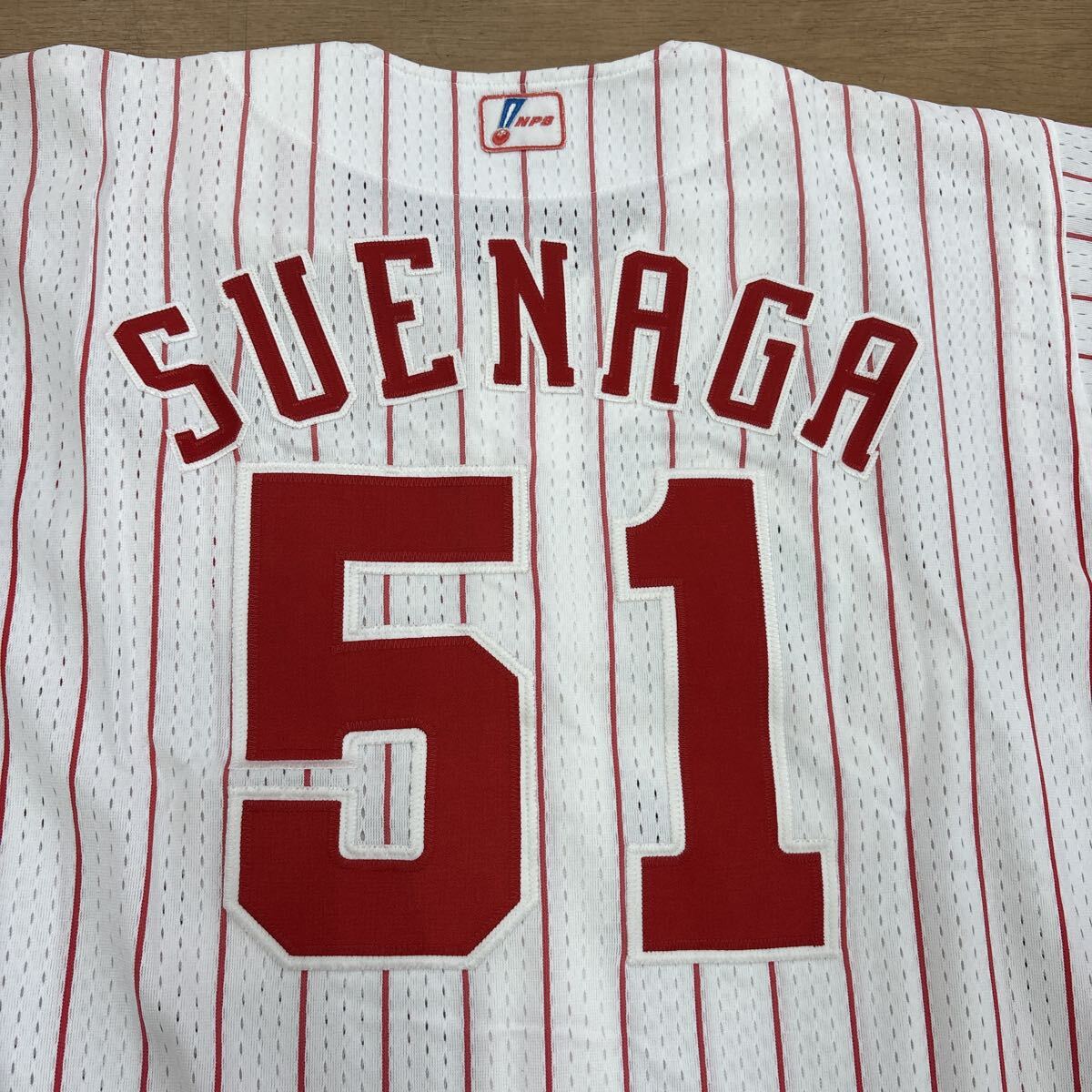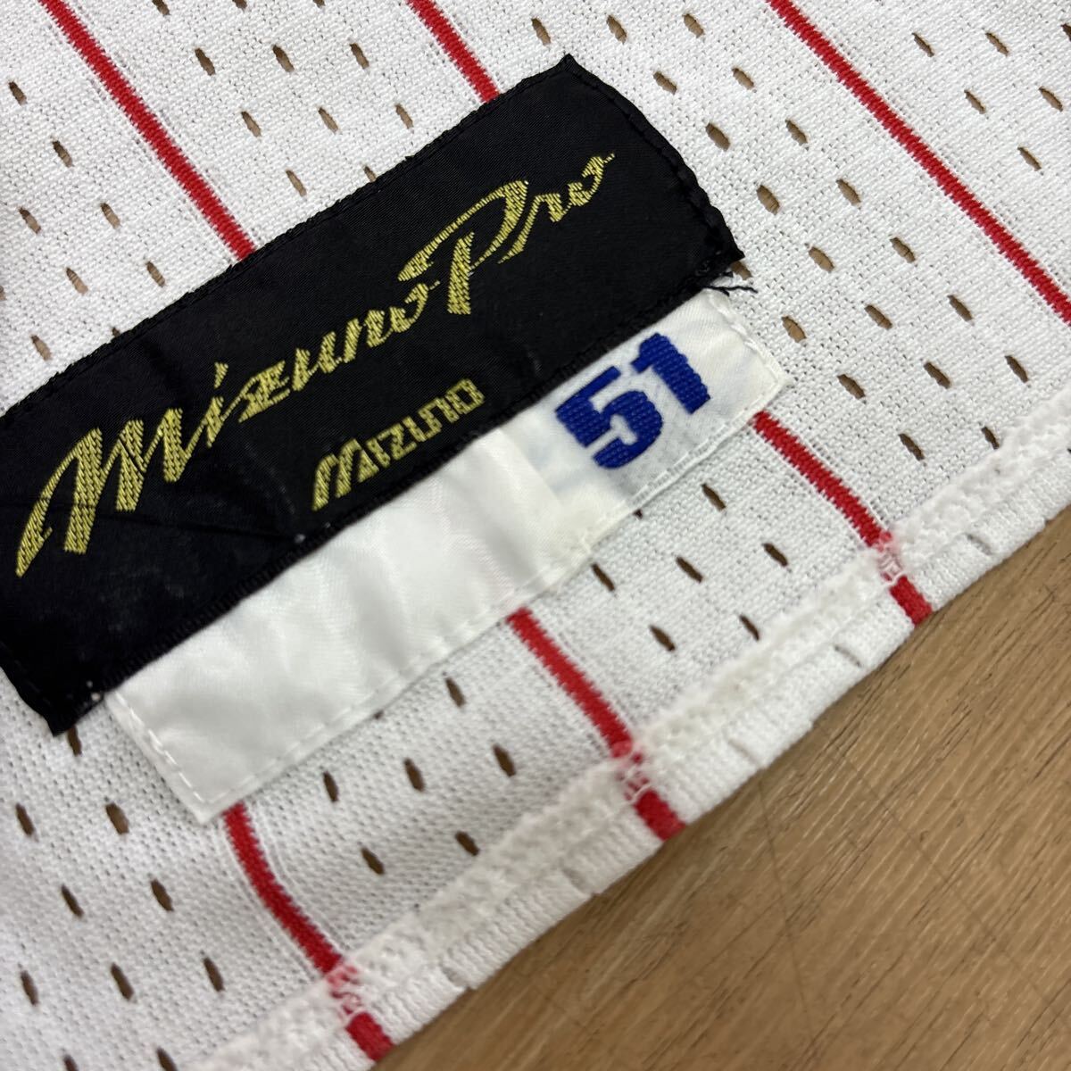 レア 希少 広島カープ 51番 末永 真史 選手 実使用 ユニフォーム 脇カット 縦じま ストライプ 2002年 ミズノ プロ ホーム 直筆サイン付き