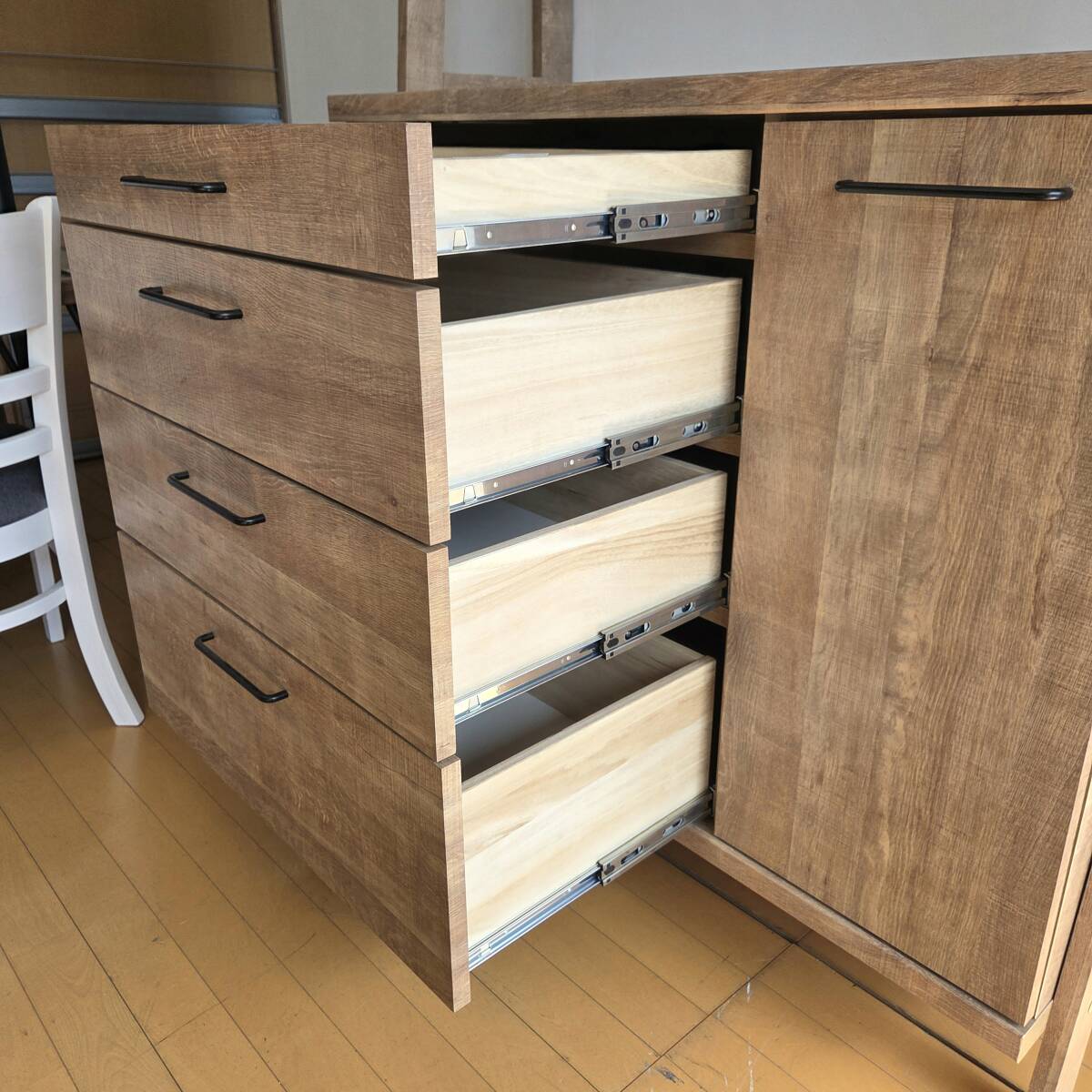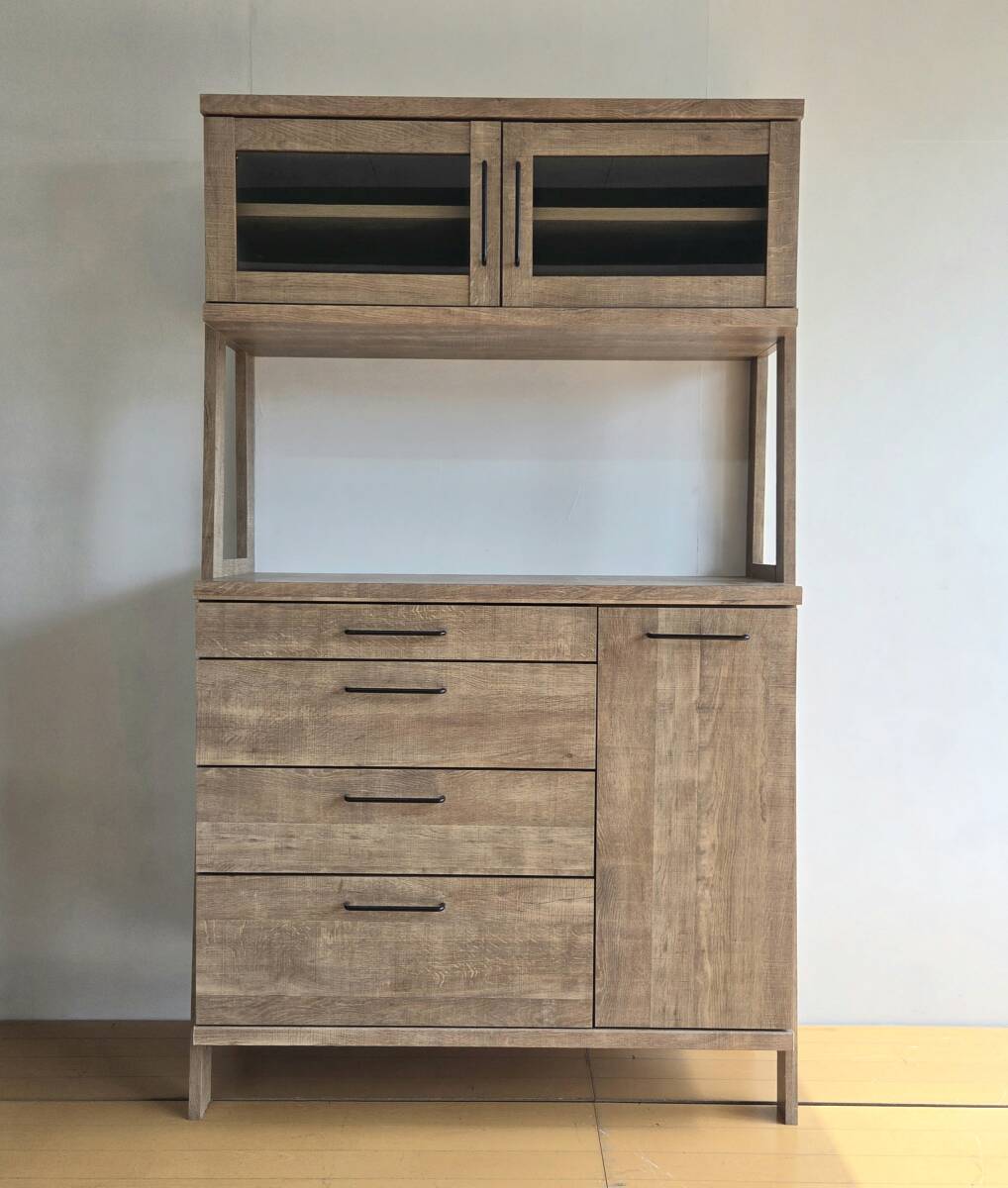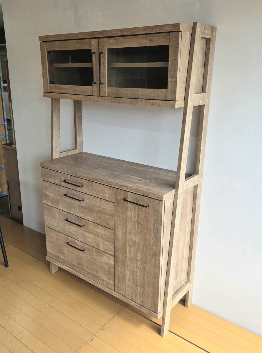 未使用訳あり シャビー&ヴィンテージ キッチンボード 幅105 引出 奥行42 高さ175 カップボード レンジボード キッチン収納 食器棚