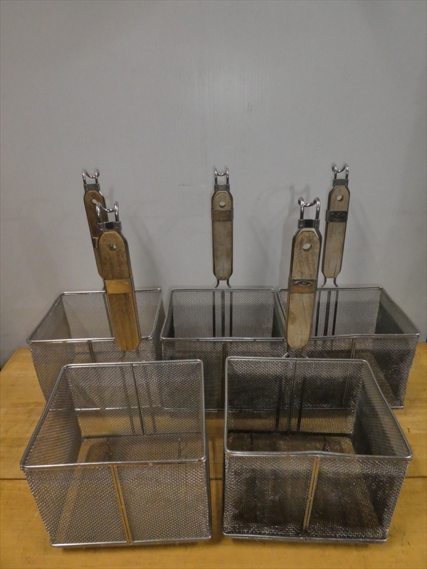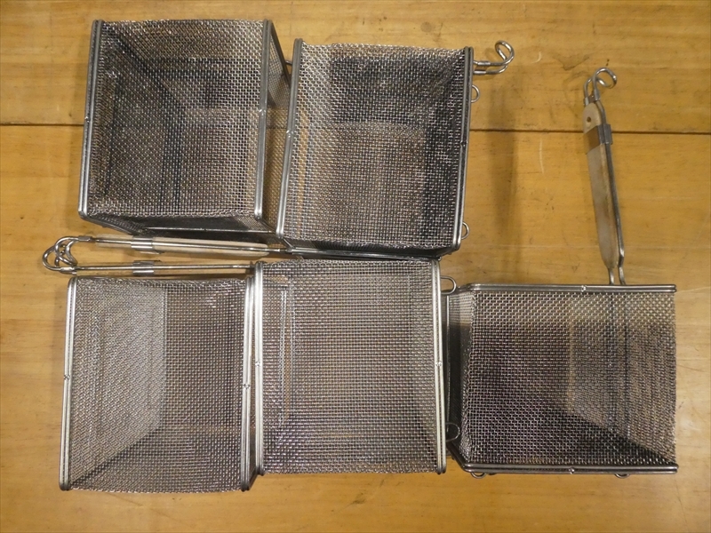 ●マルゼン 冷凍麺用角テボ 茹でカゴ 湯切りざる 5点セット うどん そば スパゲティ 厨房機器 店舗用品 調理器具●