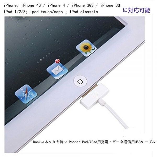 DOCKケーブル iPad iPhone4 4S 3GS 3G iPod 等対応 USB cable 充電 データ転送USBケーブル 2m 全2色 ホワイト