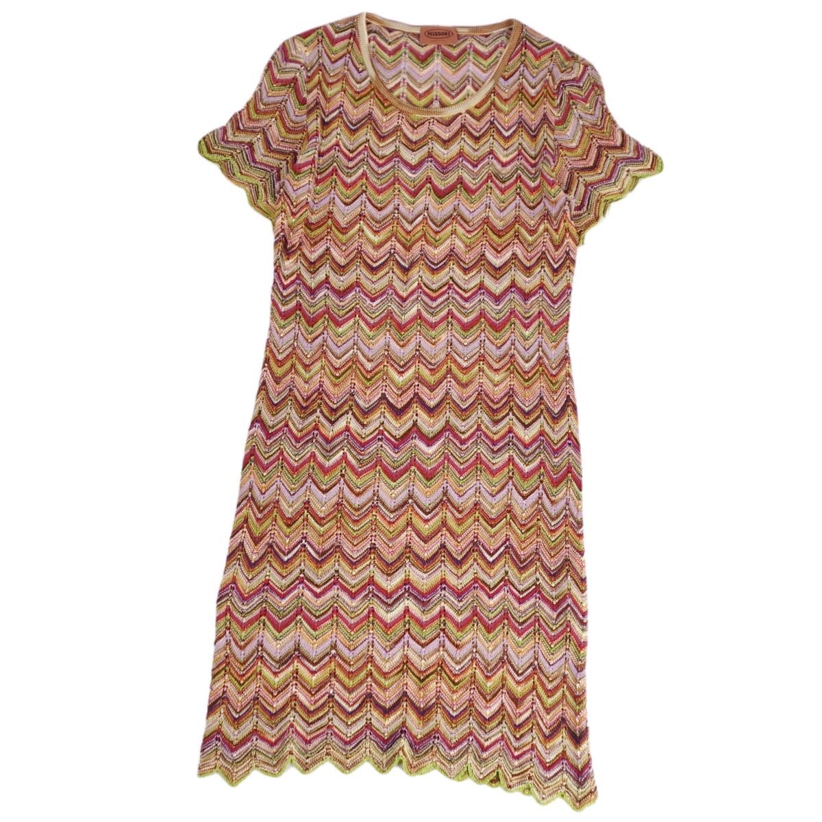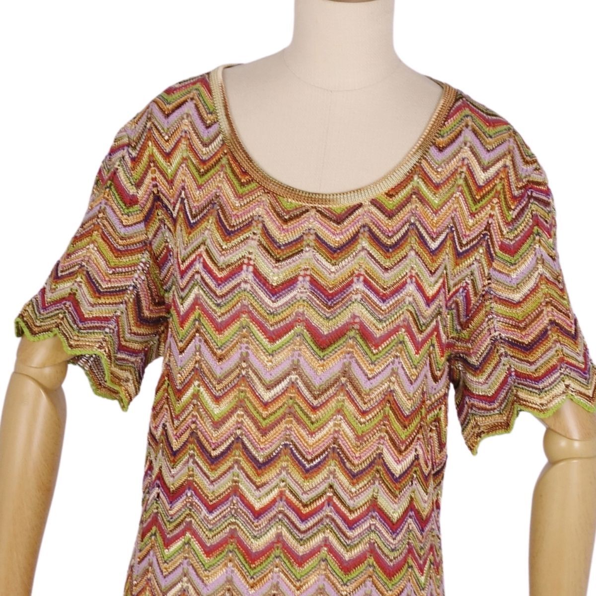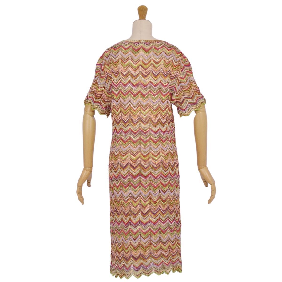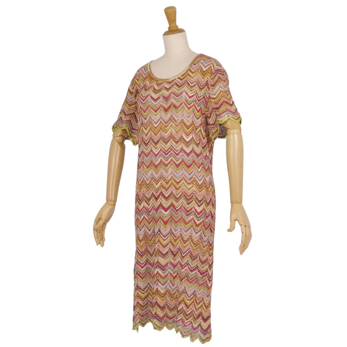 | 美品 ミッソーニ MISSONI ワンピース ニット ショートスリーブ 半袖 総柄 レーヨン レディース 44(XL相当) マルチカラー |