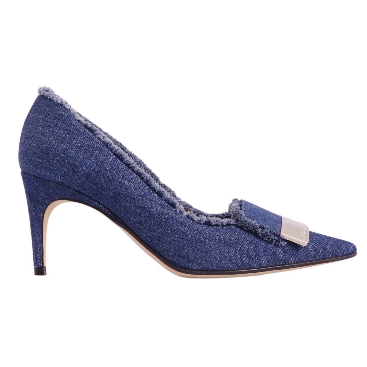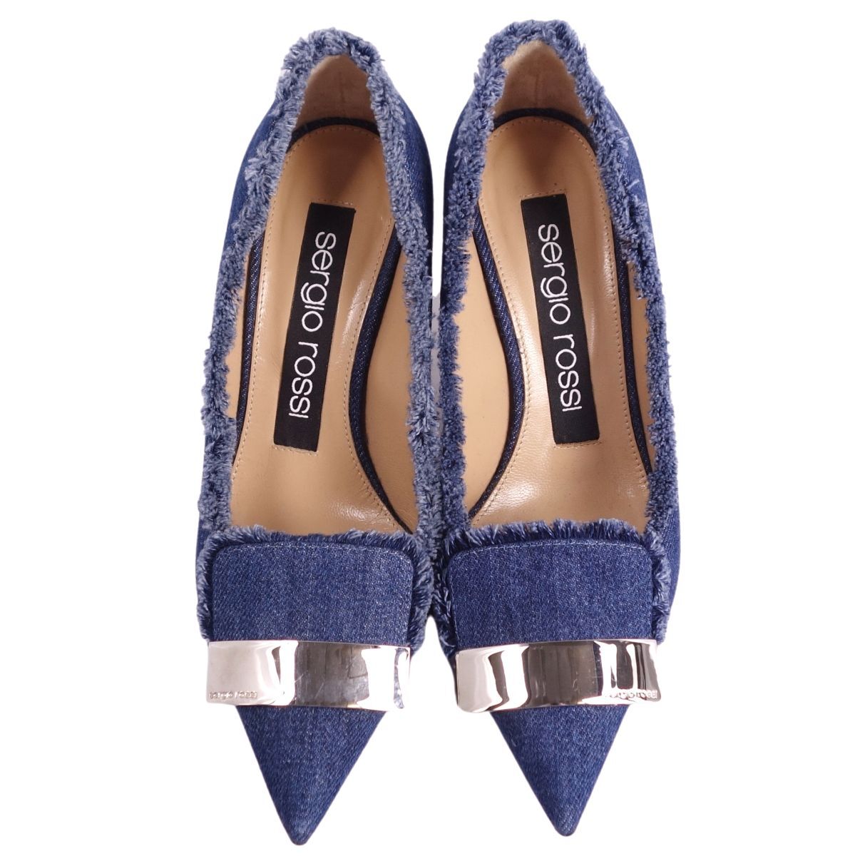 | 美品 セルジオロッシ SERGIO ROSSI パンプス sr1 デニム ヒール シューズ 靴 レディース イタリア製 35(22cm相当)ブルー |